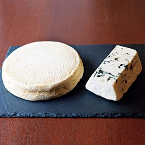 ガレットには好きなチーズをのせても。ウォッシュタイプもお勧め。テイクアウト、オンラインで50gから購入可能。〈左〉ウォッシュチーズ“マンステール„50g¥648〜〈右〉ブルーチーズ50g¥810〜