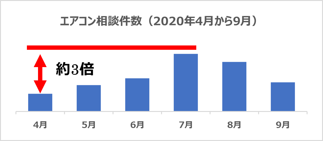 暑くなると同時にエアコンの修理や据付工事が途端に増え、さらに他の家電製品の修理などの繁忙時期と重なることで、7 月・8 月はかなり混み合うことが判明!さらに、コロナ禍により、例年よりも修理や据付工事の他、 換気設備の工事も増えるなど、コロナ対策のため実稼働時間も増え忙しくなっているそうです。ぜひ早めの試運転を実施して、調子が悪い場合は暑さが来る前に修理もしくは買い替えをして、夏を快適に過ごす準備を整えましょう。