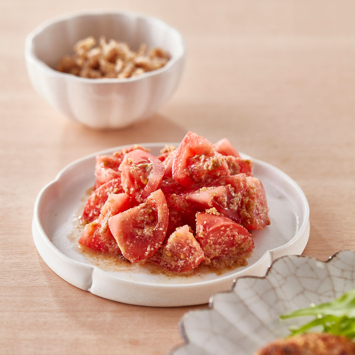 「野菜なのにジューシィな食感が苦手で、もともとトマトが嫌いだったんです。そんな私がトマトをおいしく食べられるようになったのはごまあえベースを作るようになってから。栄養価も高いし、美容にも良いからトマトが食べられるようになって良かったですね。ごまあえベースには大好きなごま油を入れているので風味も豊か。ごま油が好きな方は、分量は気にせずお好みの量を入れてみてください! どんな材料とも相性の良い、万能ベースが出来上がります」