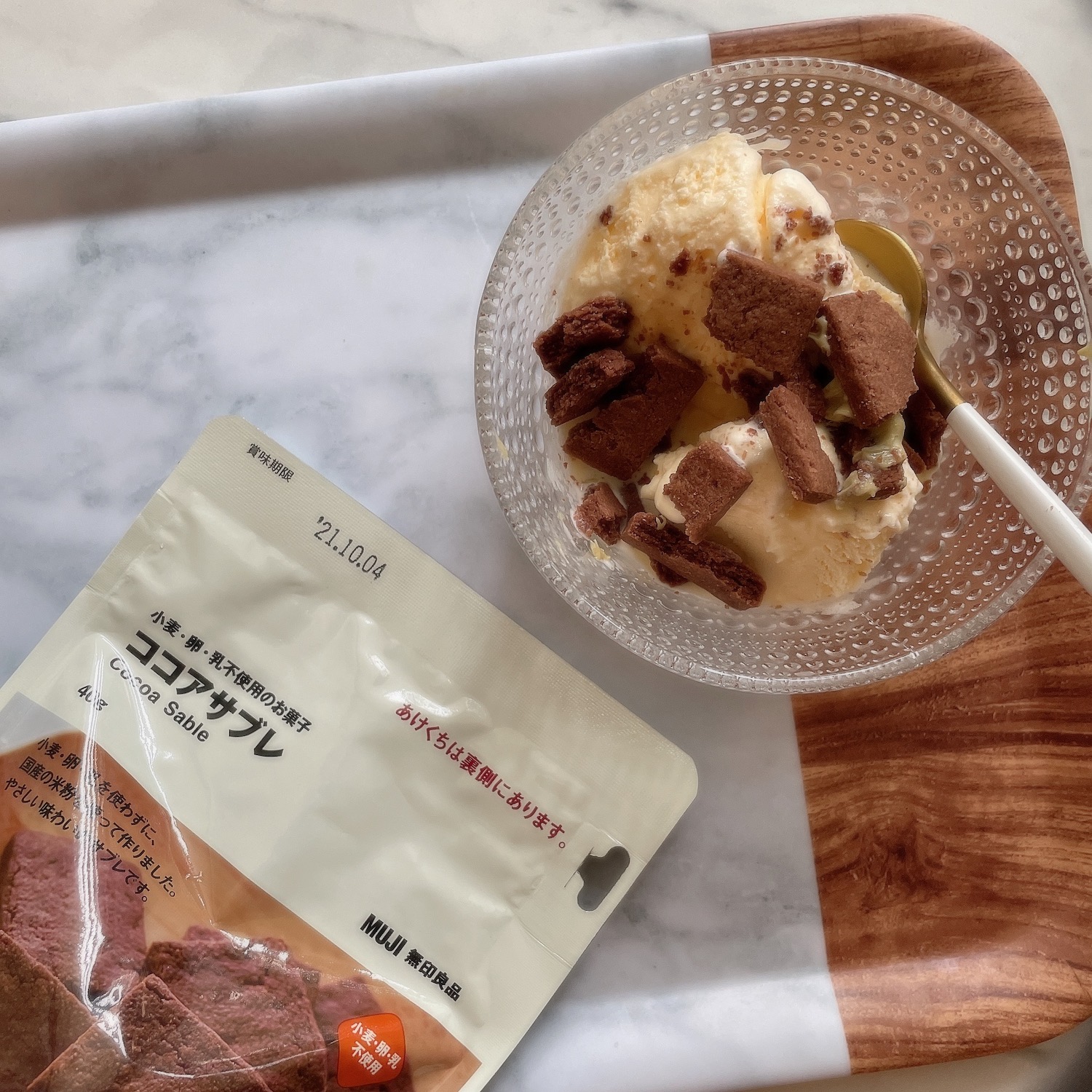 小麦粉に含まれるグルテンが腸内をはじめ消化器官の粘膜にへばりつきやすいため、焼き菓子も避けていたのですが、小麦の代わりに国産の米粉と米ぬかが使用されたサブレを発見!この日はひとくちサイズに砕いてバニラアイスにトッピングしてみました。ザクザクした食感で、ほんのり塩味が効いていて美味しいサブレです。