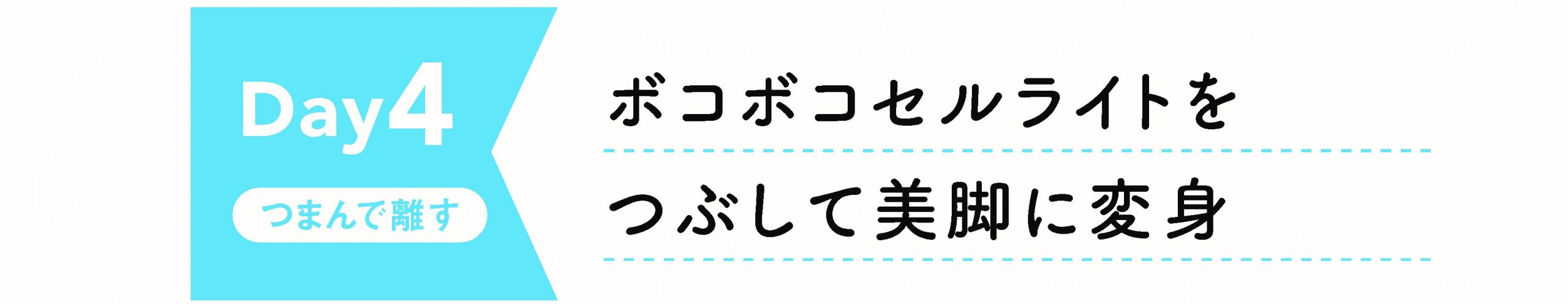 オレンジの皮のようにボコボコしたセルライトは、大きな脂肪のかたまり。脚についたセルライトをつぶして、余分なぜい肉のないまっすぐな美脚を目指します。