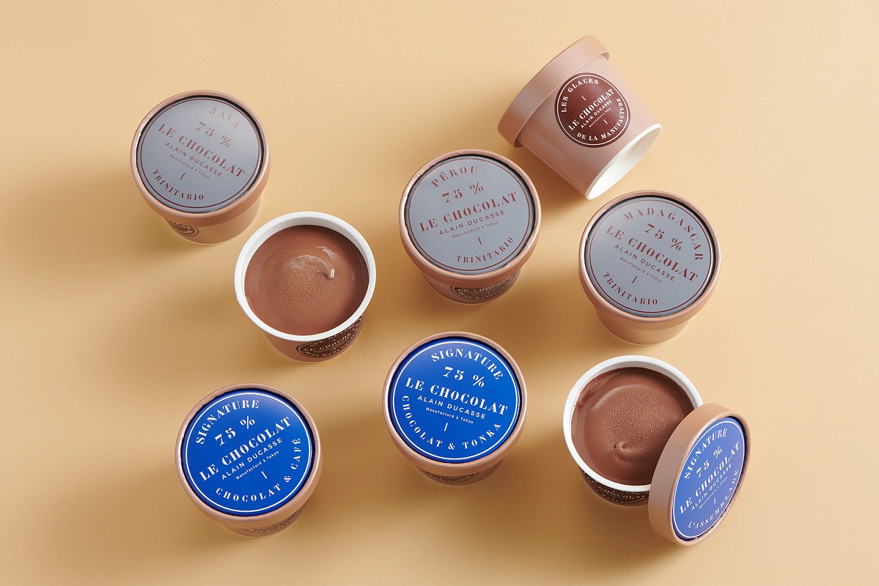 フランスの有名ショコラトリーである、ル・ショコラ・アラン・デュカス。パリの工房で厳選されたカカオ豆から作られたクーベルチュール・ショコラを使ったアイスは、一般的なチョコアイスとは一線を画す本格的な味わい!オリジナルブレンドやチョコレートとフレーバーを合わせた3種、ジャワ・マダガスカル・ペルーの産地別3種の詰め合わせ、全てにカカオ75%のチョコレートを使用。カカオの香りや甘みはもちろん、程よい渋みが心地よく男性人気も高そうです。
