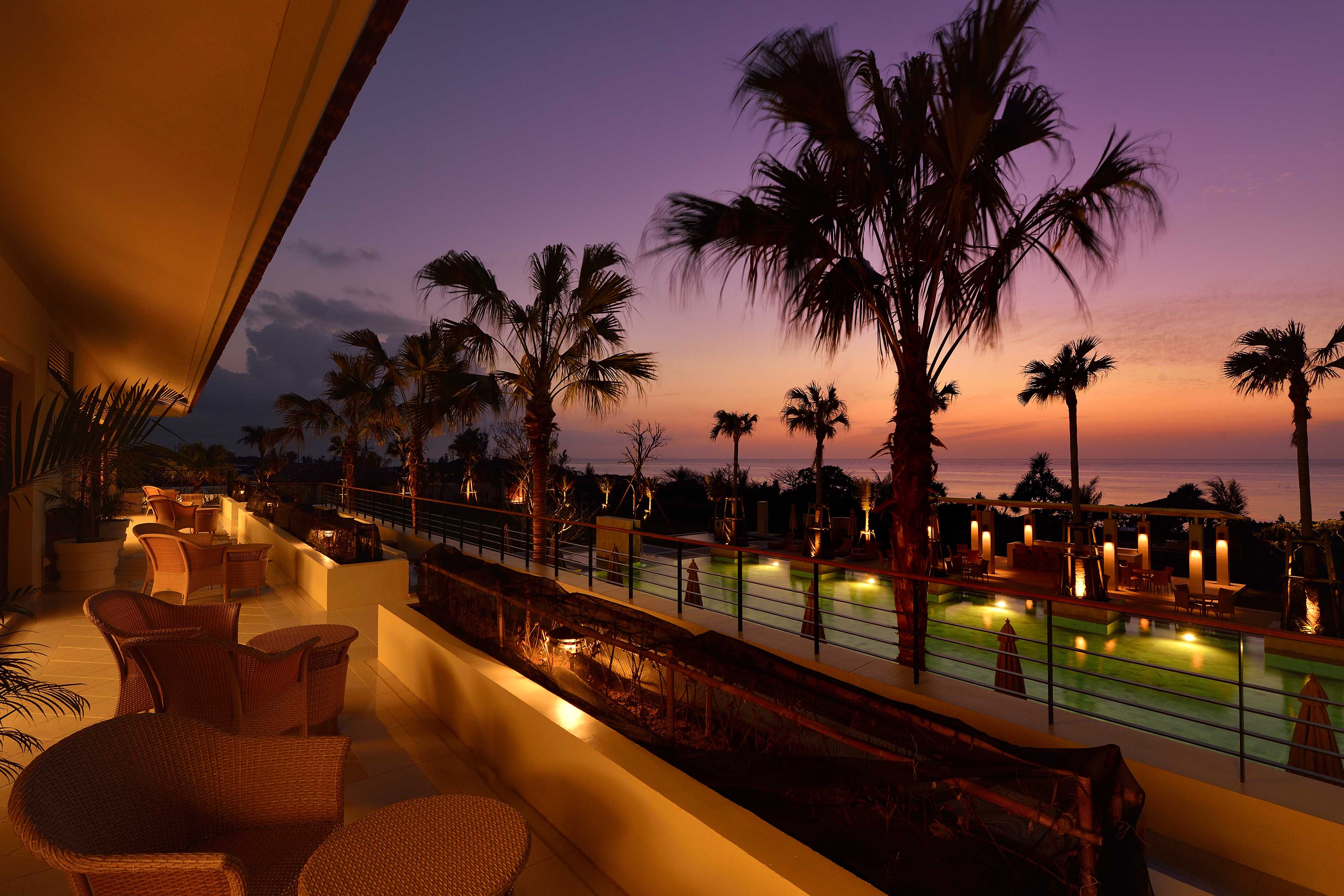 サンセットタイム(17時~19時)には、眼下に広がるオーシャンビュー、東シナ海を染める夕景とともにバーラウンジで赤・白・スパークリングワイン、クラフトビール、ソフトドリンクなどとフィンガーフードを楽しめるのもうれしいサービスです。