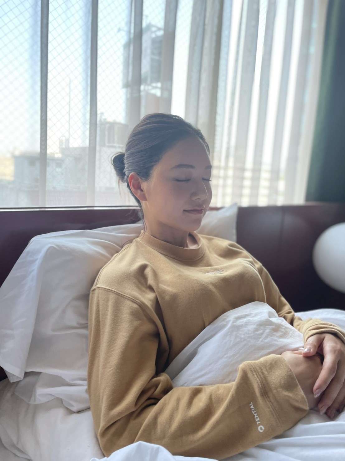 平日は毎朝6時起きです!起きたら朝瞑想をして頭をスッキリさせてから、アプリで10年日記をつけるのがモーニングルーティーン。疲労回復ができるテンシャルの長袖のパジャマで疲れを残さず、室温25℃を保って快眠するのも大切です。