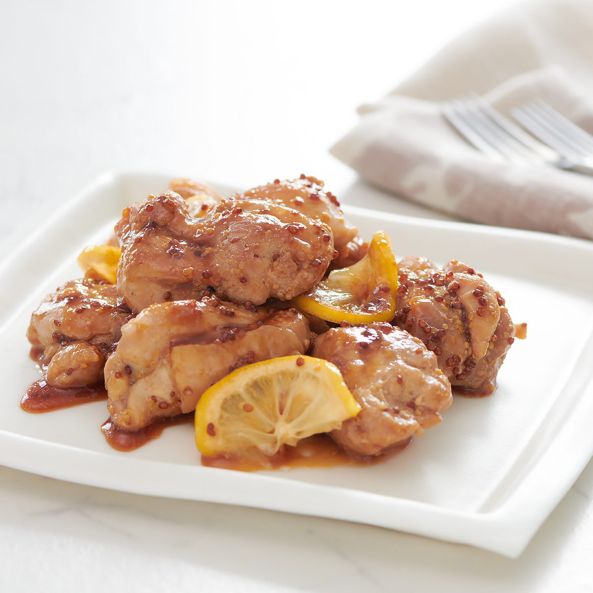 「ポイントはお砂糖の代わりにはちみつを使ったところ。はちみつに多く含まれるオリゴ糖とグルコン酸が善玉菌を増やし、悪玉菌の増殖を抑制してくれるんです。はちみつと相性のよいレモンや粒マスタードを使って、味を完成させていきます。プリッとしてジューシーな鶏もも肉は高たんぱく質で栄養価も高いので、積極的に食べている食材のひとつです」(かぢちゃん)