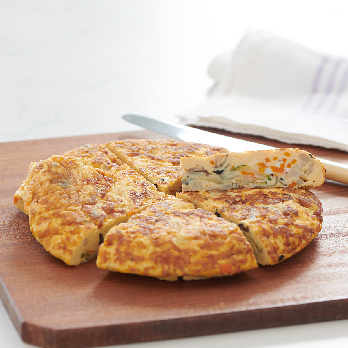 「季節の変わり目で免疫力も弱りがち。そんなときこそしっかり栄養を摂って、腸活メニューで免疫力を上げましょう!抗酸化作用がある鮭に、きのこや野菜を刻み入れて食物繊維をたっぷり含んだオムレツは、フライパンひとつで簡単に作れるのでおすすめ。にんじんやきくらげ、ズッキーニなどのおかげで、いろんな食感も楽しめます。隠し味に入れた粉チーズがポイントで、この作り方以外にも、冷蔵庫に残った他の野菜を刻んで入れてもOKです。作って冷ましたらカットし、残りは冷蔵庫で保存を。ボリューム満点のつくおきメニューです」(かぢちゃん)