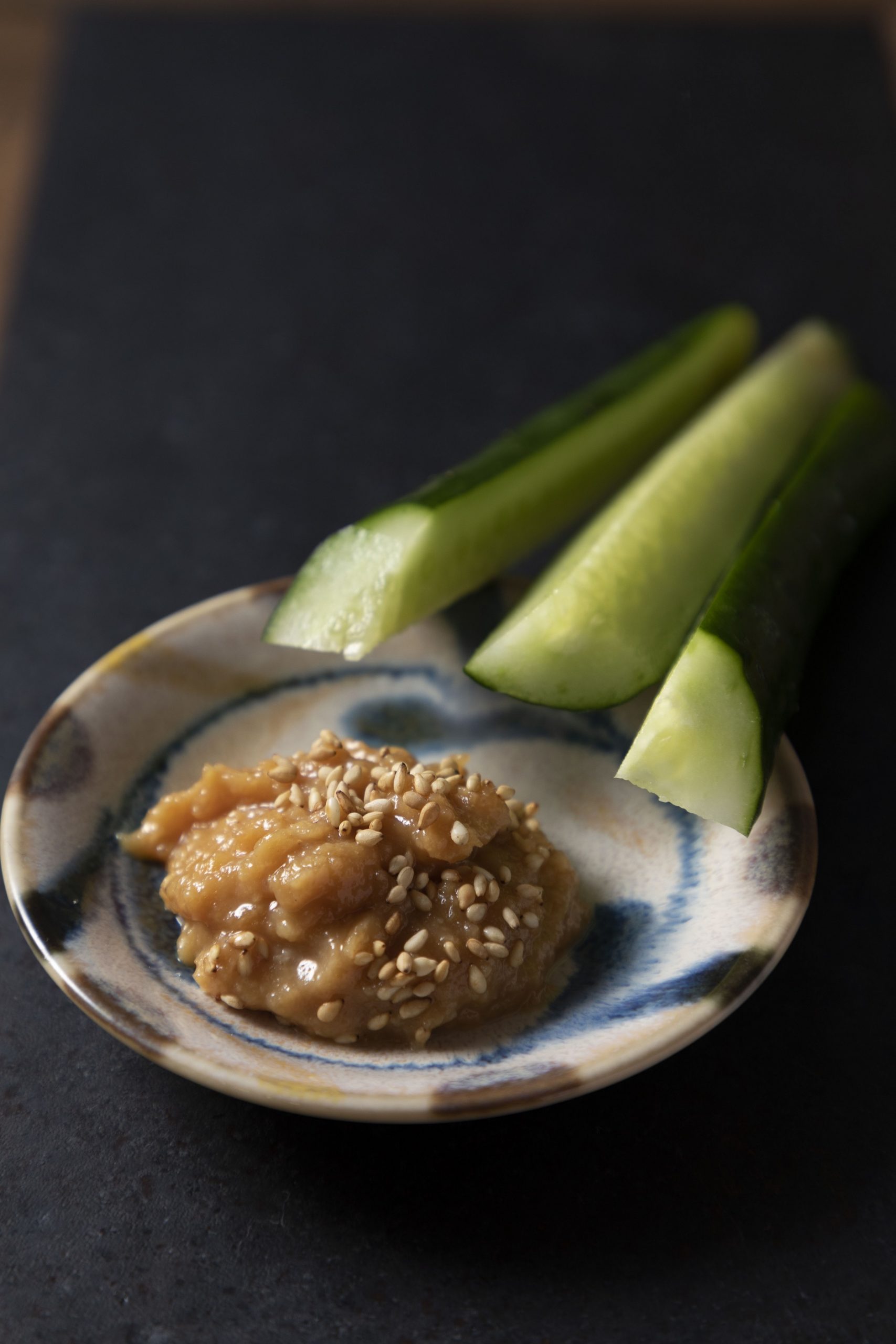 ごまの香ばしさと味噌のコクがあるたれは、あっさりとした素材に味わい深さをプラスしてくれます。味噌は好みのものでOK。味噌の甘辛さに合わせて、しょうゆや砂糖の量を加減してください。