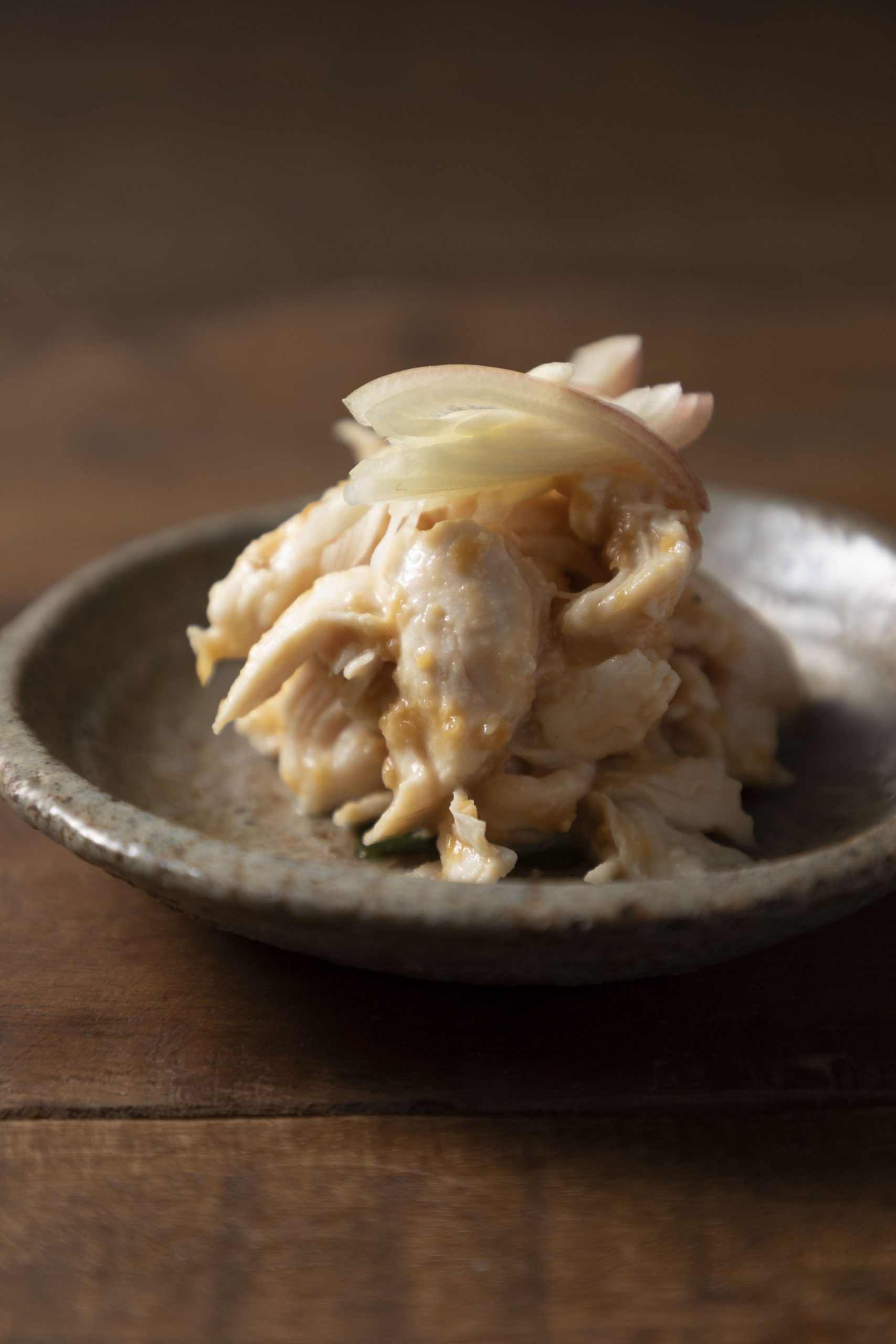 ごまの香ばしさと味噌のコクがあるたれは、あっさりとした素材に味わい深さをプラスしてくれます。味噌は好みのものでOK。味噌の甘辛さに合わせて、しょうゆや砂糖の量を加減してください。鶏ささみと和えるだけで居酒屋メニューのような一品が完成。