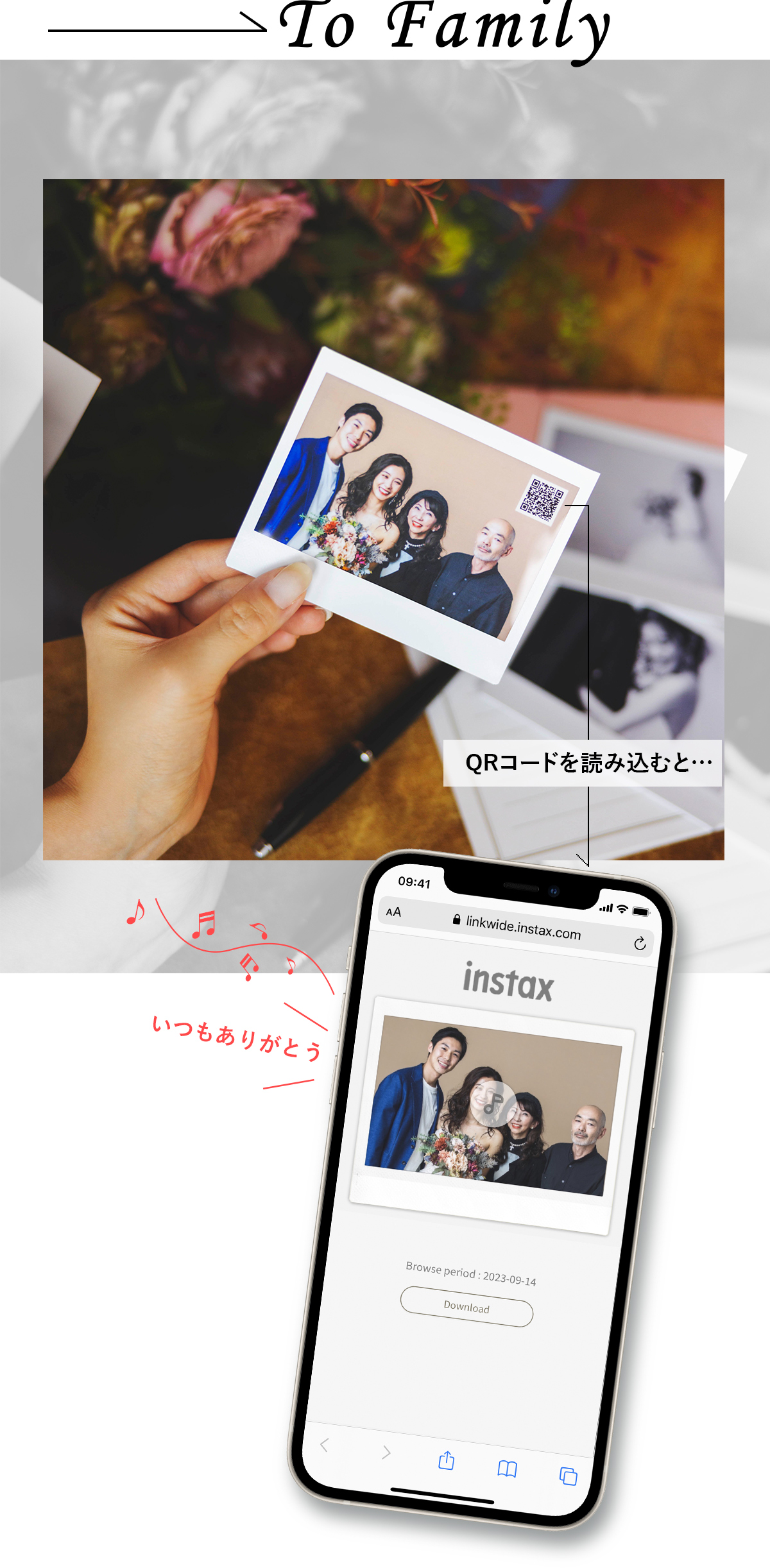 離れて暮らす家族や友人へ贈るのにピッタリなのが「音チェキ」。録音した音声をQRコード化して写真に載せたら、簡単にボイス付きメッセージカードが完成!離れていても、声を聞くだけで心の距離がぐっと近くなります。