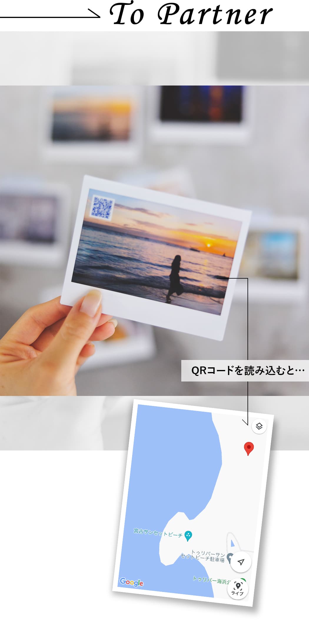 「地図チェキ」なら忘れたくない思い出を、撮影した位置情報と一緒に記録ができます。QRコードの色と載せる位置はアプリで調整できるので、撮影画像に合わせてアレンジを。