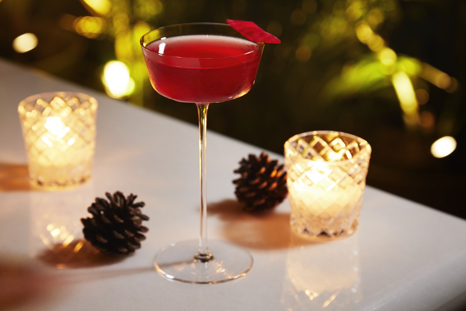 同じく31階のLobby Barではクリスマスの定番メニューをリメイクしたユニークなカクテルが期間限定で登場。写真はヨーロッパのフェスティブシーズンには欠かせないムールドワインからインスパイアされた、ほんのりスパイスが香るサイダーブランデーベースのワンダーランド マティーニ¥2,300 提供時間:日~木11:00~23:00 (LO 22:30)、 金土・祝前日11:00~23:30(LO 23:00)