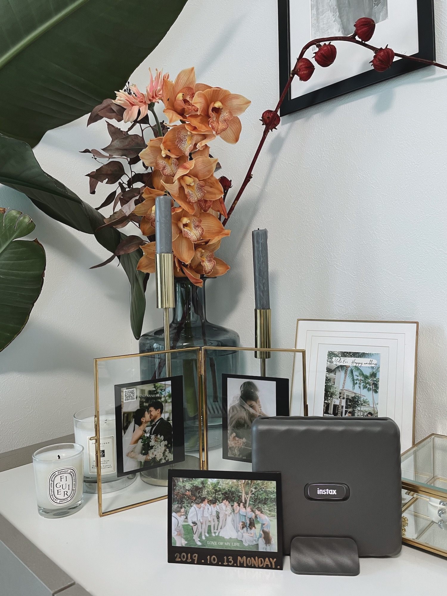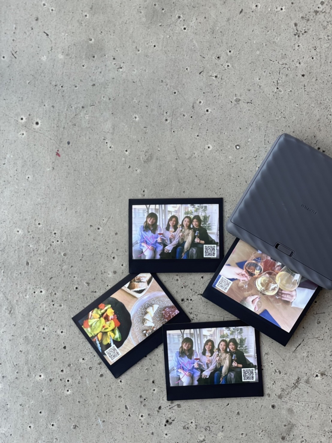 「スマホで撮影した写真を好きなように加工してプリントできるのが良いなと思いました。入れたい文字やスタンプ、写真の色味を調整できるフィルター加工など、アレンジ自在でむっちゃ楽しい。しかも、操作はとっても簡単!『instax Link WIDE』本体の色はアッシュホワイトとモカグレイの2色展開。私はシックなモカグレイを選びました。インテリアに馴染むスタイリッシュなデザインで気に入っています。スタンドが付いているので、そのままお部屋に置いてもいいし、軽いので持ち運びもOK。年末のイベントなど、お出かけ先に持っていくのが今から楽しみです♪」(岡本さん)
