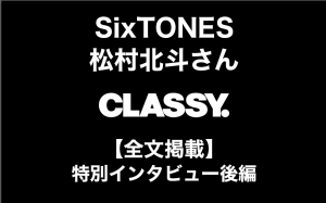 SixTONESの松村北斗さんがついにCLASSY.のカバーに登場!本誌創刊以来、男性として初めて表紙を飾っていただき、さらにご本人の発案で「後輩」と「デート」企画両方が実現♪ 朝ドラ『カムカムエヴリバディ』と映画『きのう何食べた?』についてもたっぷり語ってくれたロングインタビューを、今回特別にご紹介します。