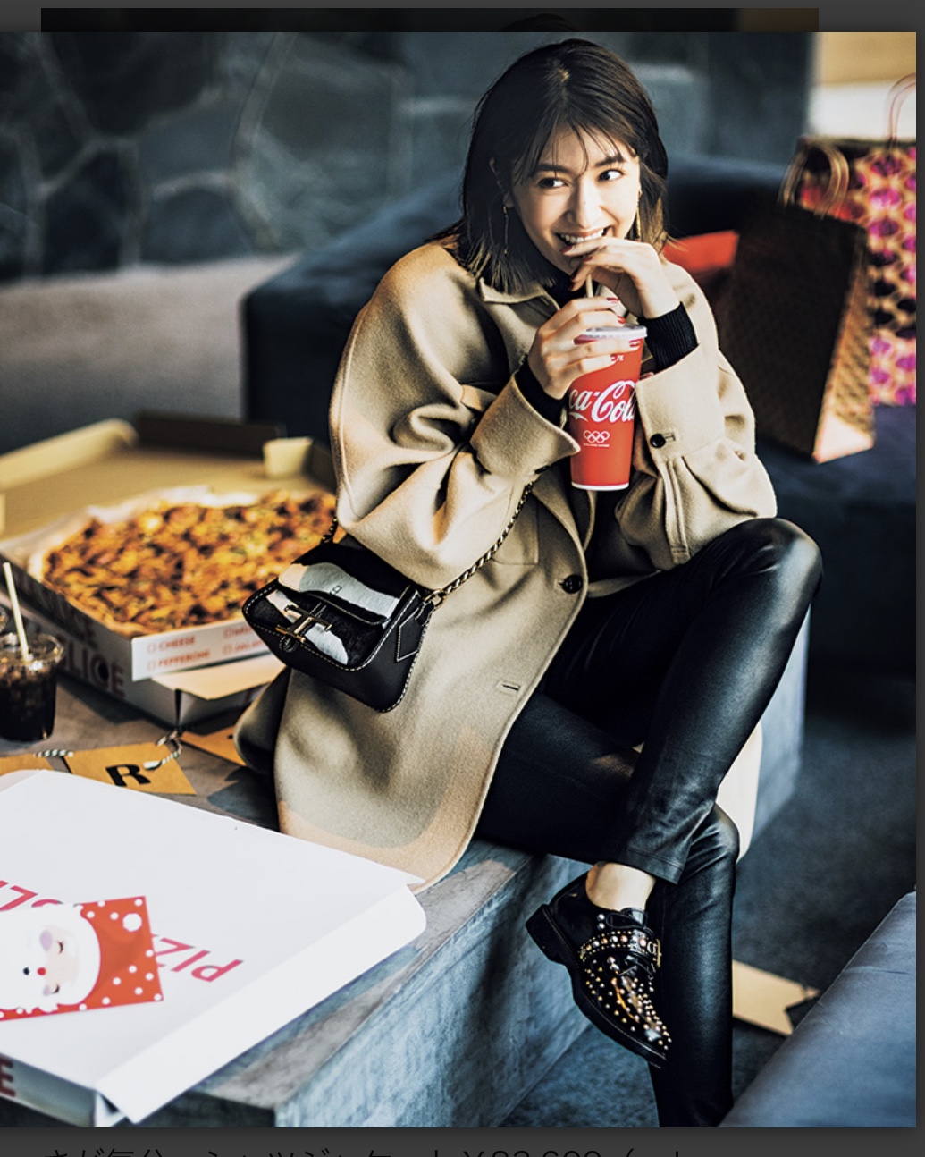 誌面で使った実際の写真がこちら。Xmasツリーを買うほどではないけれど、お部屋をXmasっぽくしたい…というシーンだったので、サンタの標識を持ってもらいました。写真に撮って存在感のある大きさなので、ホームパーティのときに持って写真を写せば、それだけで映えそう!