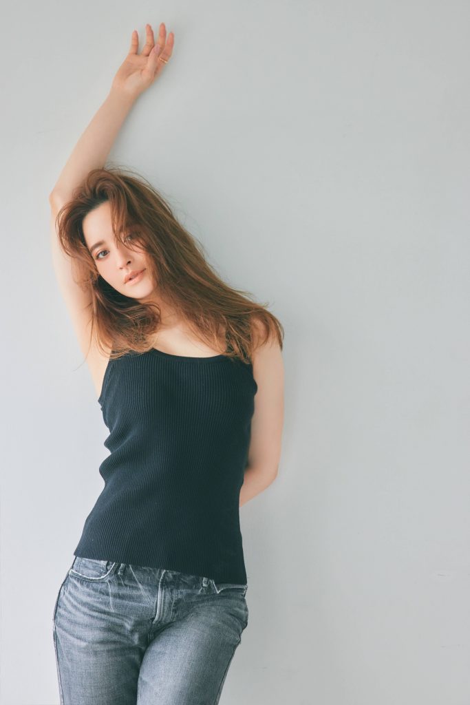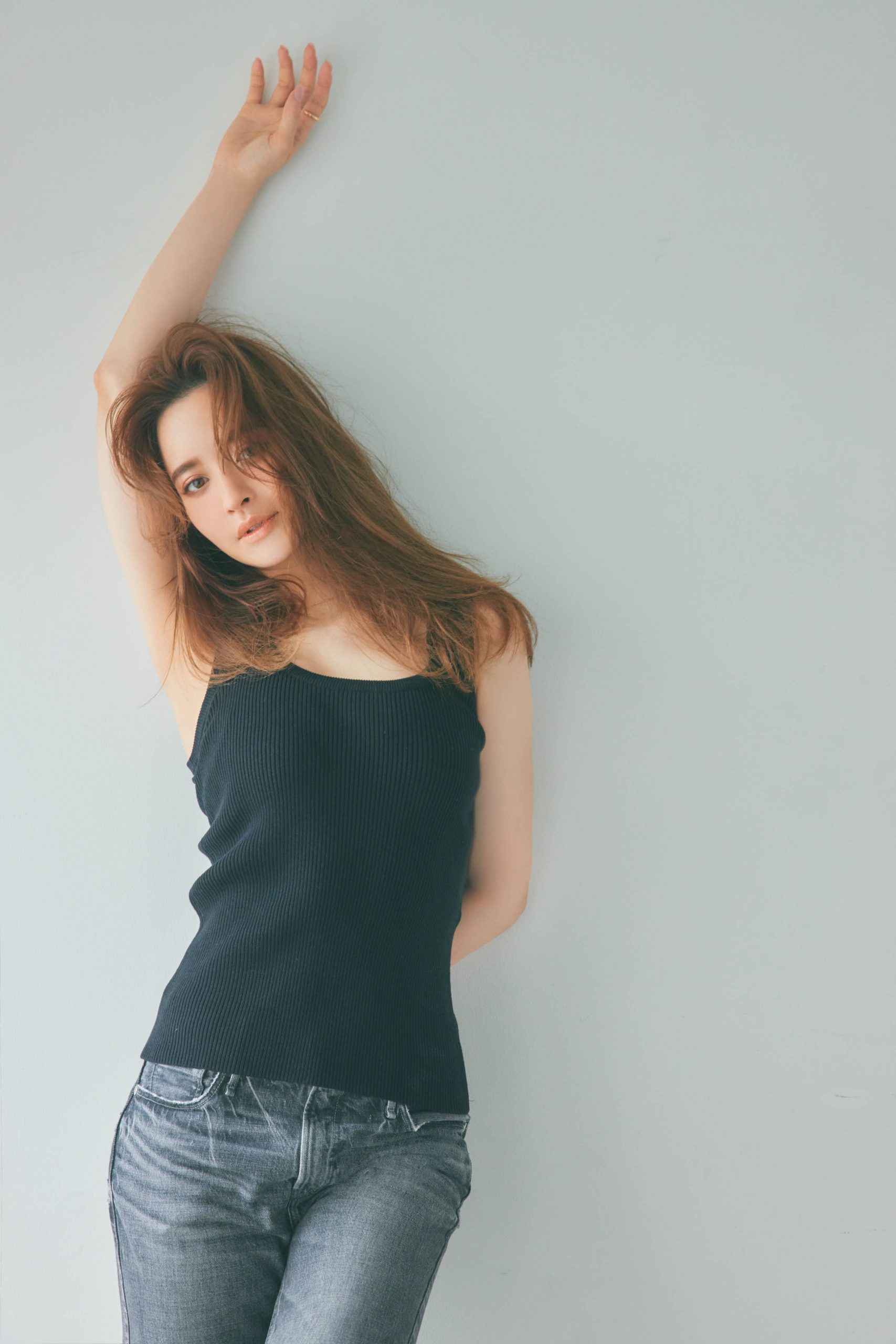 タンクトップ¥13,200(ナイスナイス モーメント/エムアイシー)デニム¥25,300(アッパーハイツ/ゲストリスト) ネックレス¥40,700 カフ&リング[右、人差し指]¥145,200 リング[右、中指]¥19,800(すべてジジ/ホワイトオフィス)