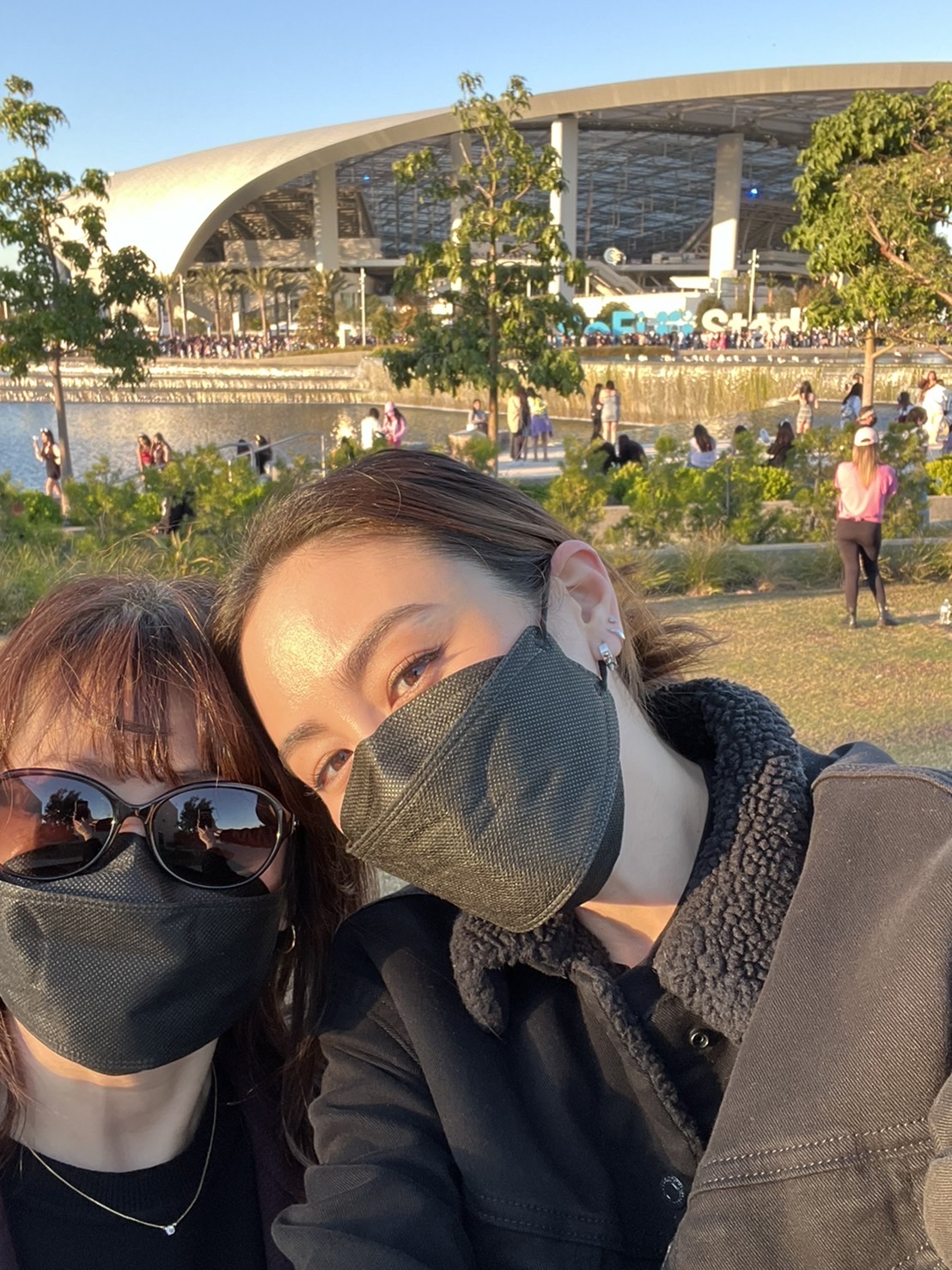 会場となった「Sofiスタジアム」をバックに記念撮影!オーちゃんのママが大ファンのあのグループって…?