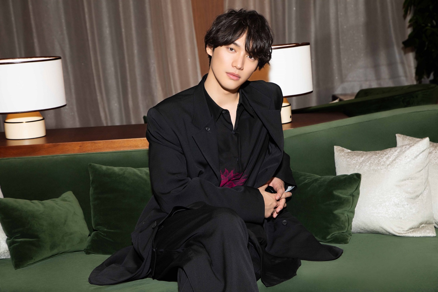 ジャケット¥140,800シャツ¥156,200パンツ¥81,400靴¥74,800(ヨウジ ヤマモト/ヨウジヤマモト プレスルーム03-5463-1500)、その他/スタイリスト私物<福士さん着用分>