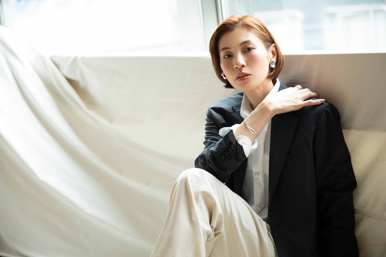 ジャケット¥47,300シャツ¥45,100(ともにエストネーション☎0120−503−971)ネックレス ¥63,800パールイヤーカフ(右耳)¥29,700シルバーブレスレット(左手)¥25,300パールブレスレット(左手)¥88,000チェーンブレスレット(右手)¥15,400リング¥26,400(すべてe.m./e.m.PRESS ROOM☎03-6712-6798)