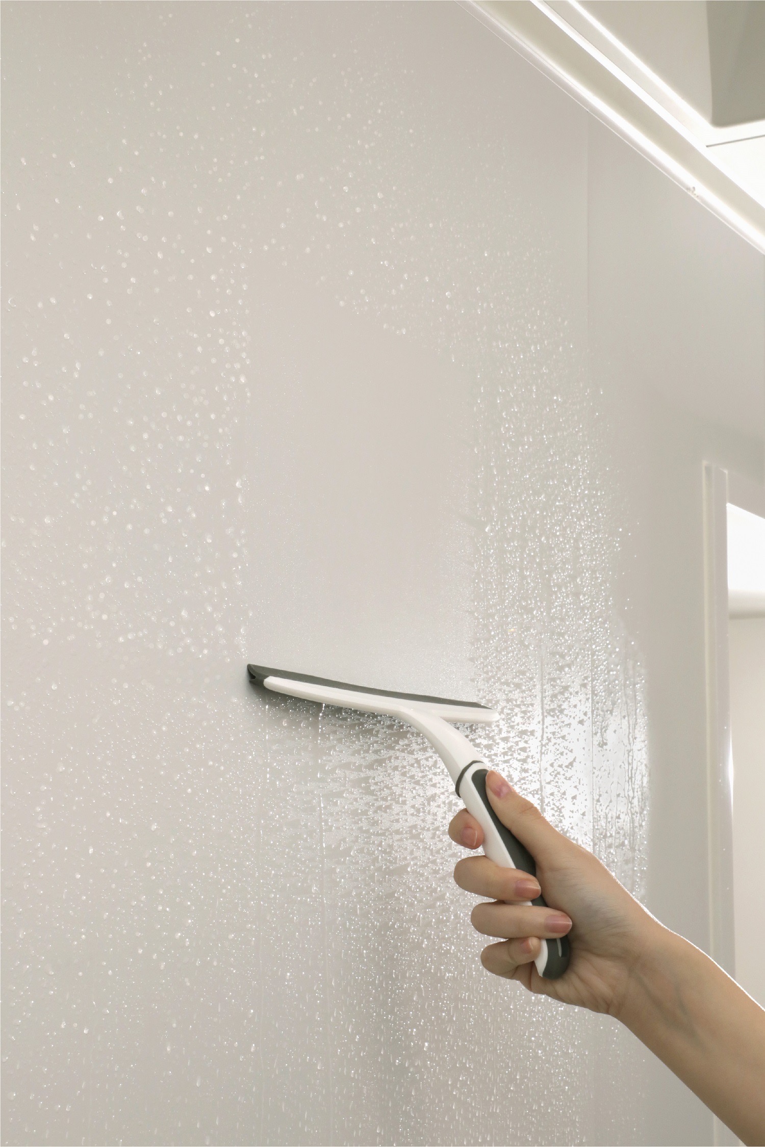 カビが繁殖する条件は、湿度や温度、そしてカビの原因となる汚れ。とくに湿度を低くするためには、なるべく水滴を残さないことが大切です。そこでお風呂掃除の仕上げや、入浴後の習慣としておすすめなのが、「スキージー」での水切り。拭きとり掃除もよいですが、「スキージー」を使うと、簡単かつキレイに水切りができます。