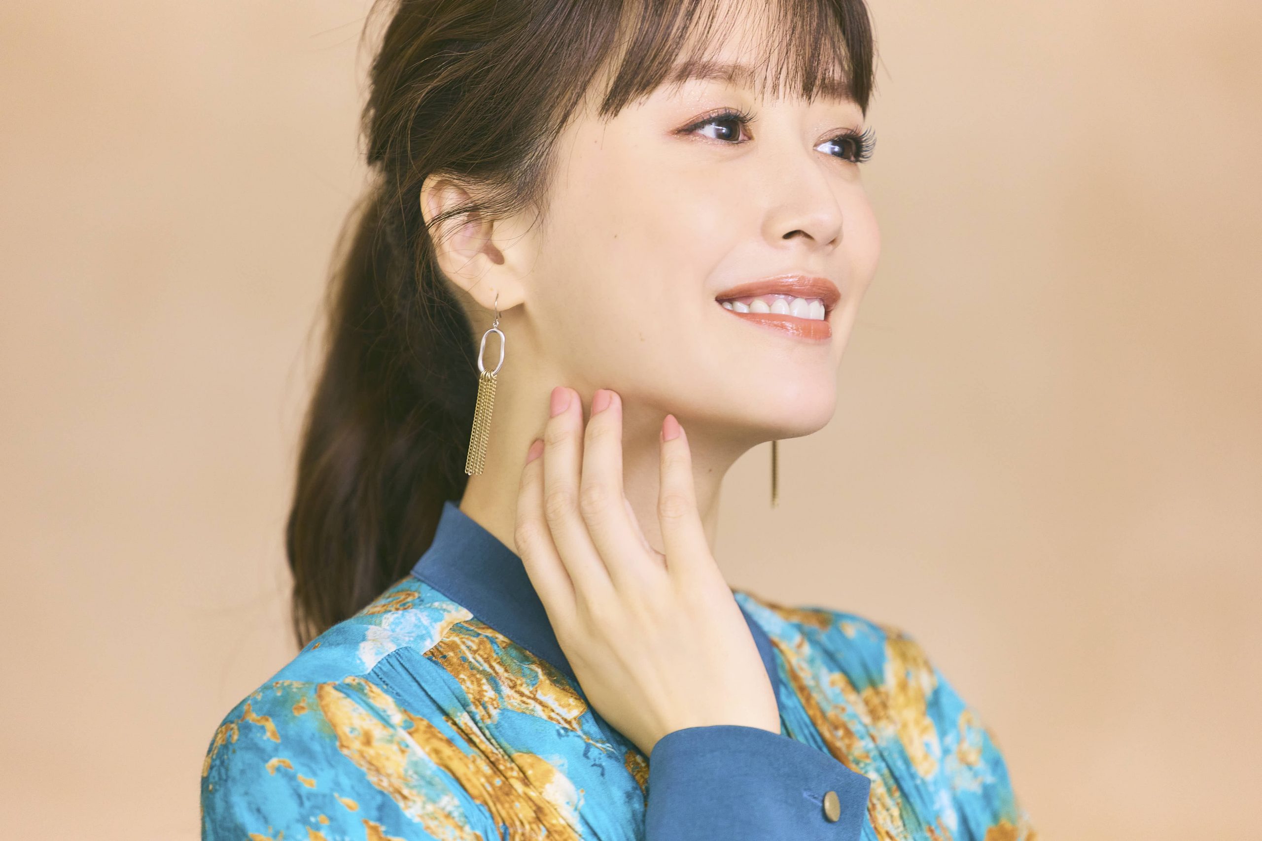 【衣装】<夢咲さん着用分>トップス¥46,200スカート¥50,600 (ともにボーダーズ アット バルコニー☎03-6451-1108 )ネックレス¥14,300 (ジェンマ アルス/GEMMA ALUS JAPAN ☎03-6438-0178)ピアス¥9,720 (アビステ ☎03-3401-7124)<花乃さん衣装協力>RPKO ダイアナ ete