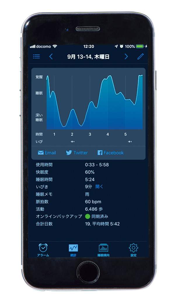 「ベッドの近くにスマホを置いておくだけで、睡眠パターンや快眠度を記録してくれます。衝撃だったのは、いびきをかいた合計時間まで記録されていたこと!(笑)」