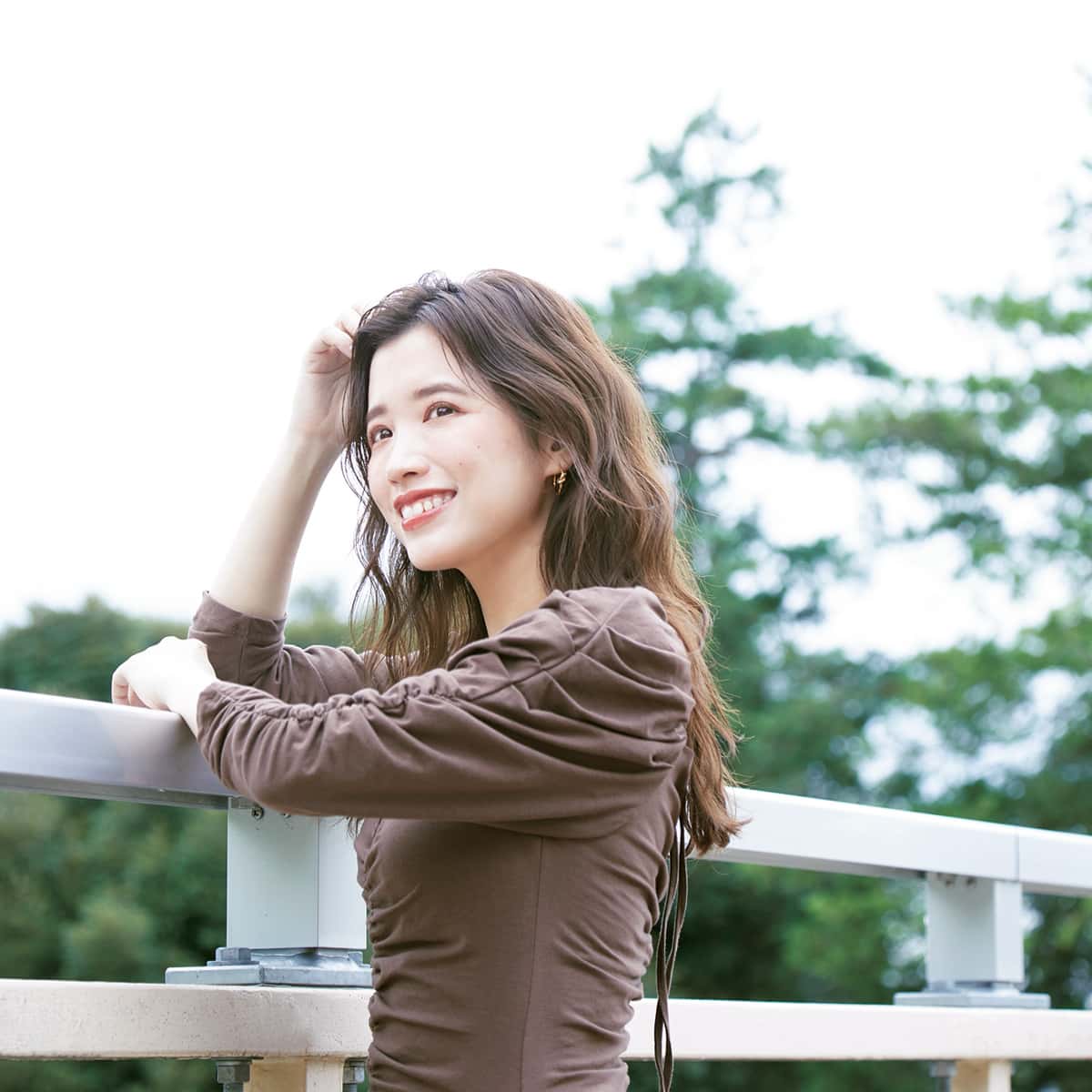 私は暇が苦手で完璧主義…という、今の時代には合っていない性格かも?(笑)でも最近はOLもモデルの仕事もさらに楽しくなってきて、頑張りたい気持ちが強くなっています。社会貢献や人のために働くことが好きなので、チームの縁の下の力持ちになれる営業にすごくやりがいを感じます。その一方、どうしても結果や数字にメンタルが左右されてしまって。インスタのリールは、その息抜きに始めたのがきっかけなんです。そこから、もともと大好きなコスメ関連やイメージモデルの仕事につながったのは私にとって大きな変化。30代でもまだ新しいことにチャレンジできるんだ、と新たな可能性を感じながら、働きざかりの今を精一杯駆け抜けたいです!