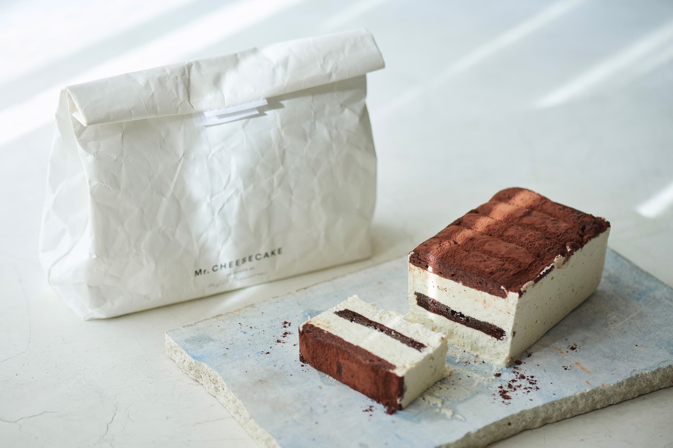 お酒も小麦粉も使用していない、儚い口どけのティラミス。温度によって変化する味わいと香りが楽しめます。Mr. CHEESECAKEのオリジナル保冷バッグに入れて届くのも嬉しい!