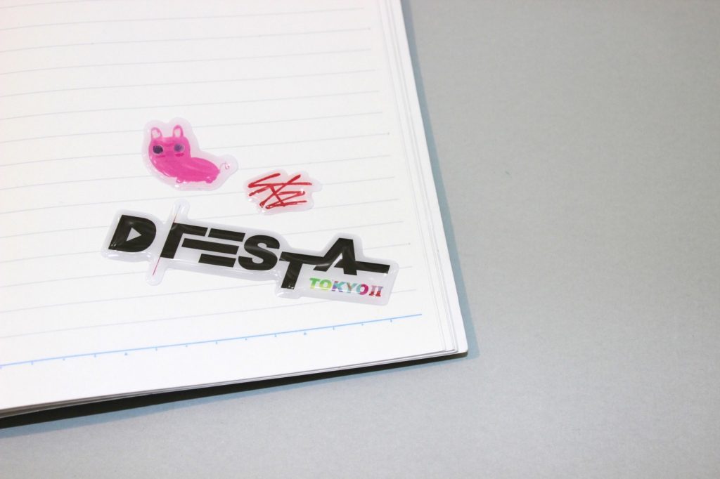 の3点がセットになっています。フォトカードの絵柄はスカイツリーで開催されていた「D‘FESTA TOKYO」と異なっており、(画像3枚目:【左】D’FESTA TOKYOの絵柄 【右】D’FESTA TOKYOⅡの絵柄)、ファン必見です! 注目は、先着来場者限定で渡される、「D’FESTA TOKYOⅡ」限定のエポキシステッカー。グループのロゴやアーティストが落書きしたイラストがステッカーのデザインになっていて、ステッカーの表面はプクッと膨れていて見た目もかなり可愛い! スマホケースやノートなど、モノを選ばず貼れる仕様になっています。会場内では、カードホルダーのプラスチックケースに、推しグループのステッカーを貼っているお客さんも発見!