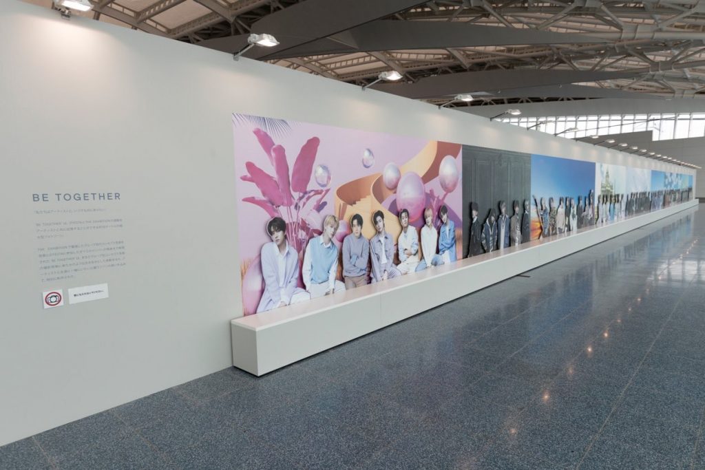 「D’FESTA TOKYOⅡ」で新登場となる、イベント最大のフォトスポット「BE TOGETHER」。「THE EXHIBITION」でグループごとに撮影されたコンセプトを背景に、9グループ・69名の等身大パネルが、なんと約50メートルにわたって展示されています。パネルの手前に設置されたベンチに座って写真撮影を楽しんで!