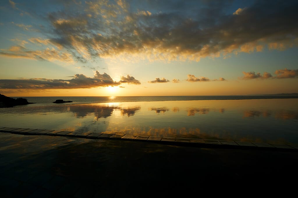 日本三古湯のひとつである「白浜温泉」。海岸沿いの自然湧出の温泉“湯崎七湯”のなかでももっとも歴史が古く、昔のままの姿を唯一残していると言われているのが「崎の湯」。太平洋の岩礁に作られた露天風呂は、潮と硫黄の香りが立ち込め、つかると湯と海が視界で一体化。ときに打ち寄せる波が豪快なしぶきをあげ、その風情を一層盛り上げます。