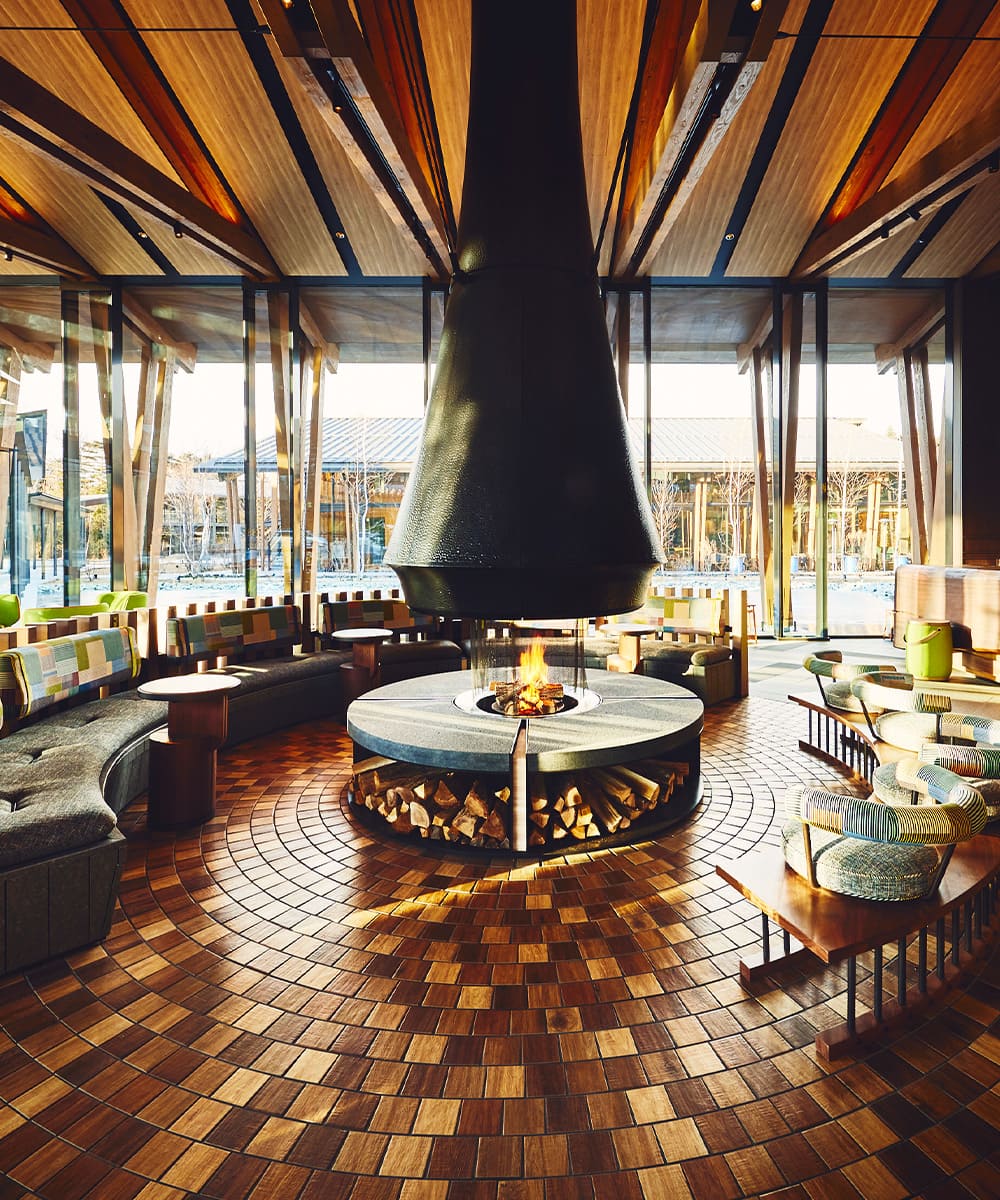 ホテルは、ロビーラウンジ、スパ、ダイニング、客室3棟の計6つの棟で構成されており、その真ん中には焚き火を楽しめるフォレストガーデンが。ひんやりとした外の空気に、パチパチとゆらめく炎が温もりを与えてくれます。景色、温度、音、香り…五感で癒されるスポットです。(※今後も開催予定はありますが、常設ではなく、天候や季節により異なります)