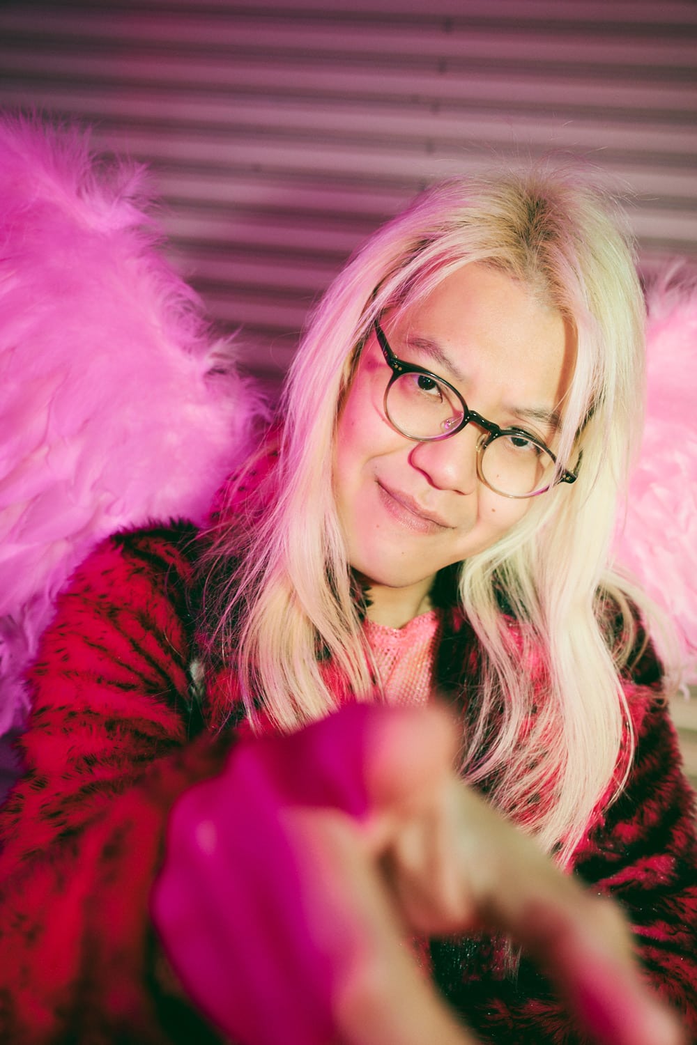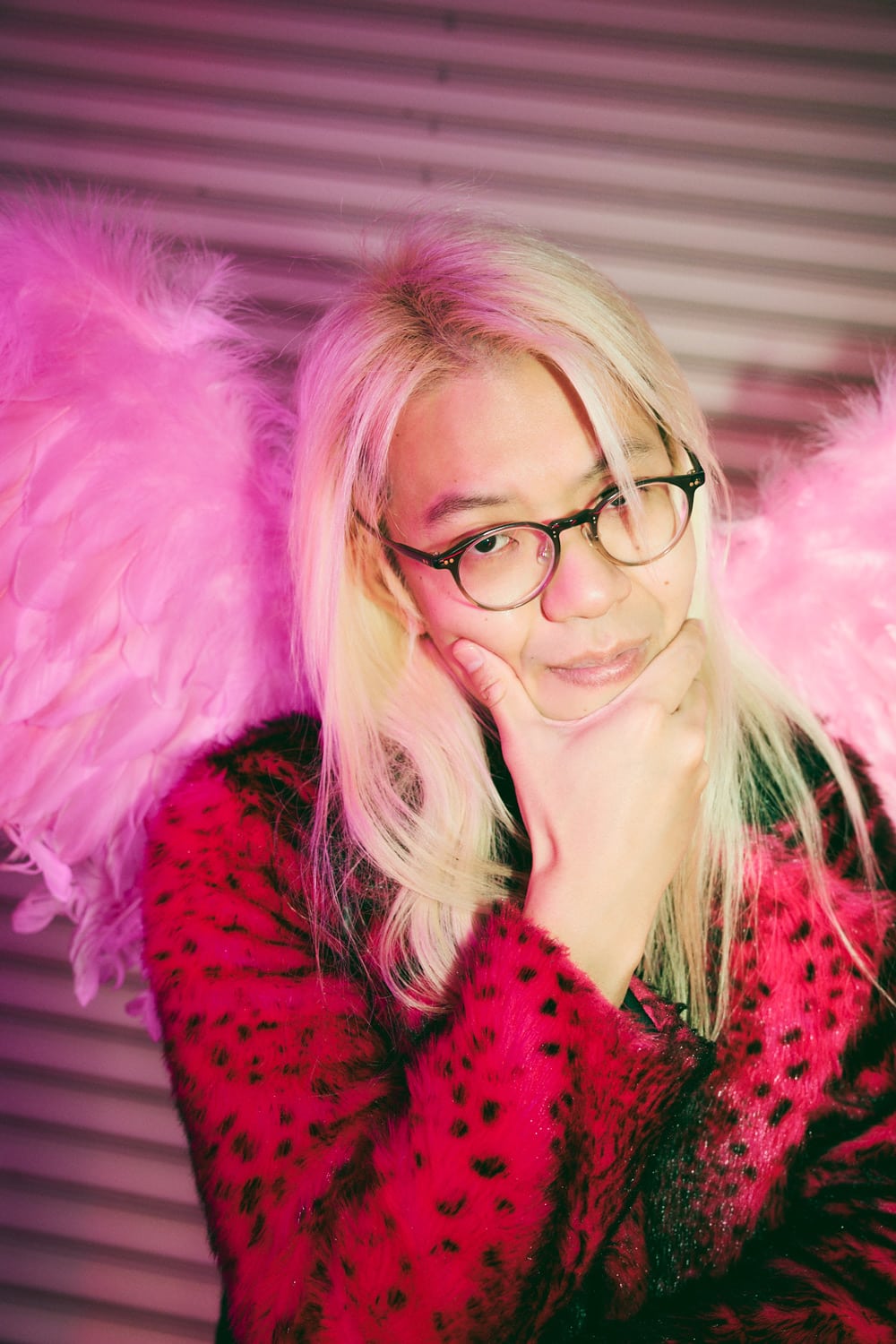 これは、「ずっと、あなたと、ずっと、吉本」です。ZAZYになってからは「より面白い格好にしていきたい」という意識があって、どんどん派手になっていって、ピンクになって、羽がついて、という感じです。