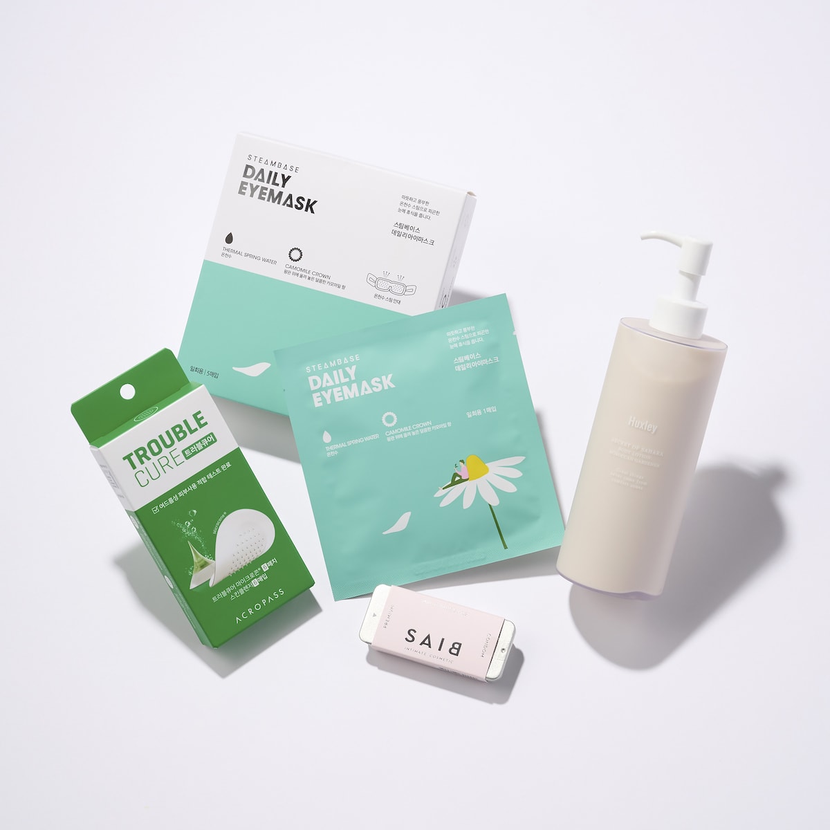 [上段右から]ハクスリー ボディローション ₩24,700(※セール価格) スチームベイス アイマスク5枚入り1箱 ₩6,900 アクロパス 6個入り ₩9,800[下段]セイブ コンドーム ₩31,600
