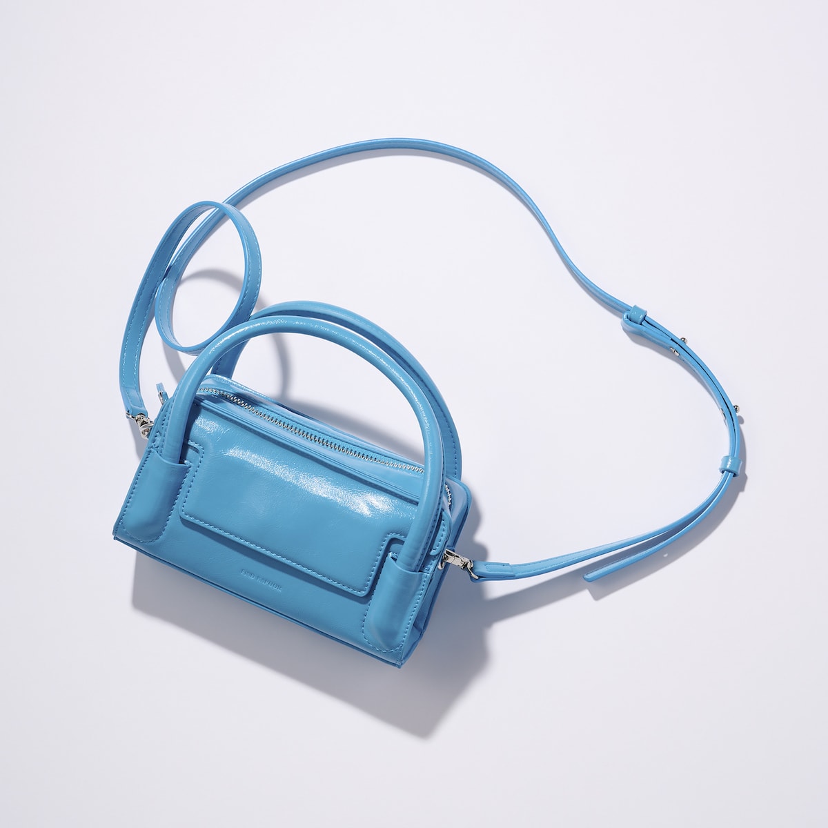 ソウル発のバッグブランド「FINDKAPOOR」では鮮やかな水色のバッグをGET。スマホ、ミニ財布、リップにハンドクリームまで難なく入り、スクエア型で使い勝手も抜群。「カラフルなファッションアイテムは、ミニバッグならコーデに馴染みやすくあわせも簡単。パキッと鮮やかなカラーがコーデを華やかに仕上げてくれるので、おすすめです」(by スタイリスト阿部)