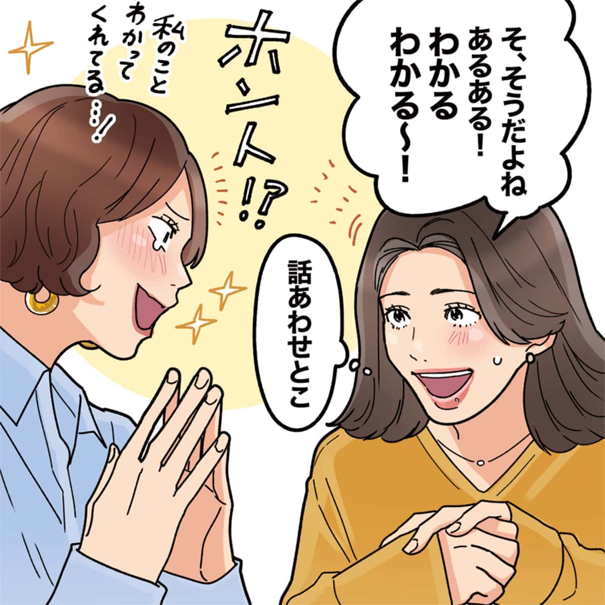 「わかる」という言い方はお互いの距離が縮まる感じもあり、つい言ってしまいがちですが、安易な同感は「あの人だったらわかってくれる」という依存関係に陥る危険が。依存がエスカレートして夜中に連絡がきたり、「わかってくれると思ったのにひどい」と攻撃に変わってしまうことも。特にネガティブな相談事の時の「わかる」は避けるようにして。