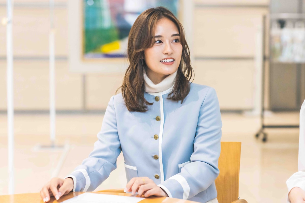 郡司さん:後輩も増えて、先輩もいて、アラサー世代ってちょうど中間の位置にいますよね。先輩に伝えたいこの意見、どうしたら上手く伝わるのか。後輩ってどう指導するのがいいのか。私が大切だなと思っているのは、感情で話さず「どういう風に伝えたら、わかりやすいかな」と客観的に考えること。感情と切り離して考えることで、先輩に指導を仰いだり後輩にアドバイスしたりしやすくなるって気が付きました。とはいえまだまだ悩むことも多くて、さっきもメイクルームで「どうしたらいいんだろう」って頭を抱えていて(笑)。でも、この二人はそれに対して自分の意見を言ってくれるし、「こうしたらどうですか?」って提案もしてくれるんです。相手が素直な気持ちで話してくれると、世代は関係なく心地よく仕事ができるんだなって思います。ワンチームだなって感じますよね。