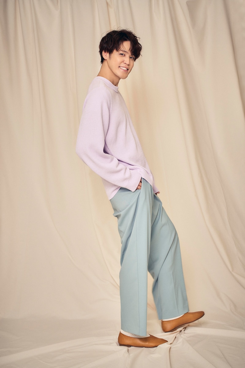 ニット¥30,800〈WRAPINKNOT〉パンツ¥31,900〈KHONOROGICA〉シューズ¥10,450〈opposite of vulgarity〉(すべてHEMT PR tel.03-6721-0882)その他/スタイリスト私物