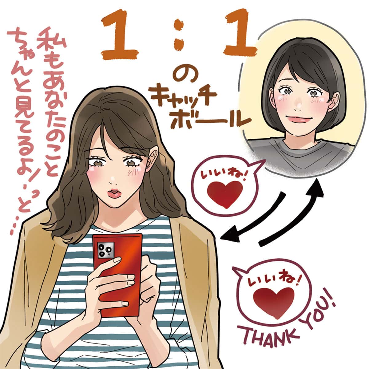 一方的に「自分を認めてほしい!」というスタンスの人とは、誰しもあまり関わりたくないもの。あなたの話は一切聞いてくれないのに、こちらがその話題に興味があるかどうかに関係なく一方的に話されたら疲れますし、そんな人とはまた会いたいと思わないですよね。リアルでもSNSでもコミュニケーションのバランスは「1:1」になるように心がけましょう。承認欲求が強い人は「自分がしゃべりたい欲求」もすごく強いことが多いので、つい話が止まらなくなる人は特に人の話を聞くことを心がけて。SNSでも〝いいね〟がついたら〝いいね〟を返しましょう。