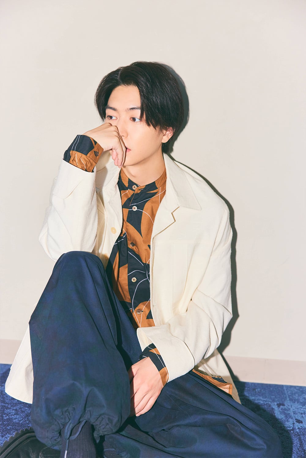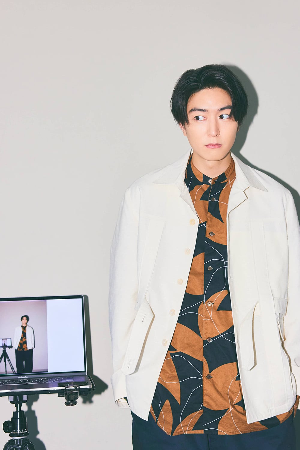 衣装詳細:ジャケット¥63,800(スティーフ/スティーフショールーム 03-6721-0549)シャツ¥13,200(ヌワールファブリック/ジーンズ ファクトリー 卸団地本店 088-861-5100)パンツ¥35,200(ハビィー/ハビィー 03-6555-5451)シューズ¥16,500(ヴァリジスタ グローバル スタジオ/アースマーケティング 03-5638-9771)
