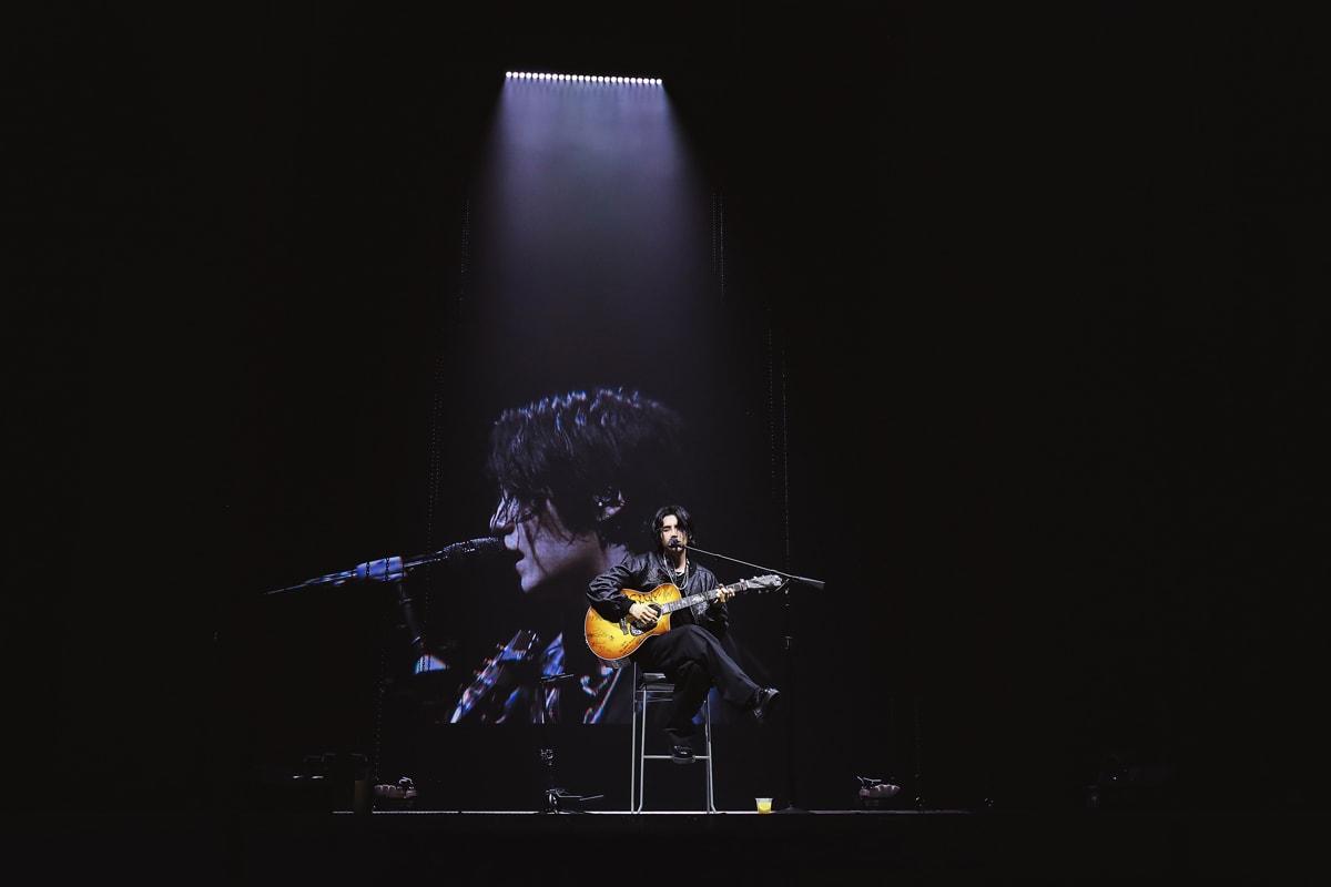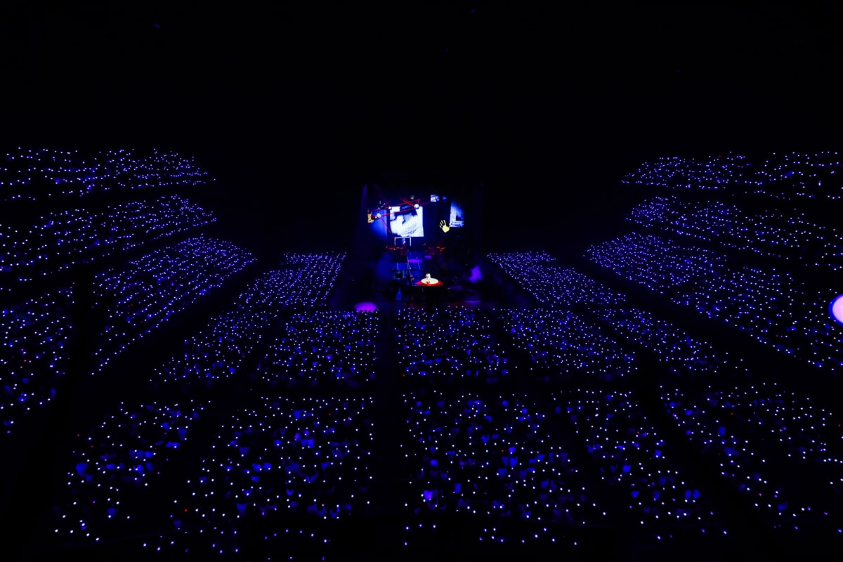ここで映し出されたのはSUGAが以前から尊敬する人として名前を挙げていた、坂本龍一氏と対面したときの様子。『Snooze』の一節を坂本氏が奏で、その傍らにはSUGAが喜びを隠しきれない表情で立っていて−−−。幼少期に坂本氏の映画音楽に圧倒され、楽曲づくりのインスピレーションを得ていたことを公言したり、『Merry Christmas Mr. Lawrence』をカバー演奏していたSUGAにとって、本当に嬉しい瞬間だったことがみてとれます。“長い旅路が平穏でありますように R.I.P SAKAMOTO RYUICHI”のコメントで映像が終わると会場からは自然と拍手がわきあがり、あたたかいムードに包まれた会場に『Snooze』が響き渡ります。続く『Polar Night』は、争い合いが多く共感や理解が少ない世界に対して、攻撃をする対象ではなく疑問を投げかける曲。その曲中、時折咳をする姿を見せるSUGA。