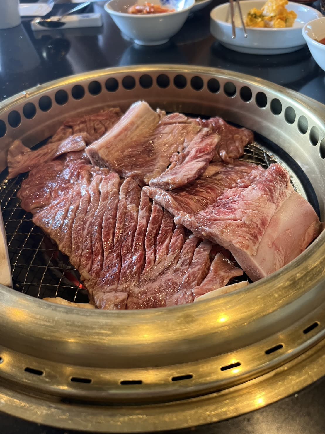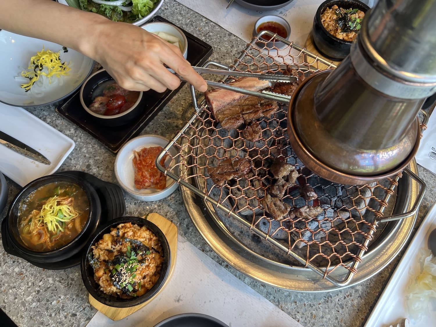 ソウルでも人気の「オバルタン」がパラダイスシティ内にも。選りすぐりの食材のみを使用したホルモンは、オモニが焼いてくれるので美味しさも倍増♡ シメには冷麺、そしてパッピンスまでもしっかり堪能して水着のことは忘れて満腹に…。