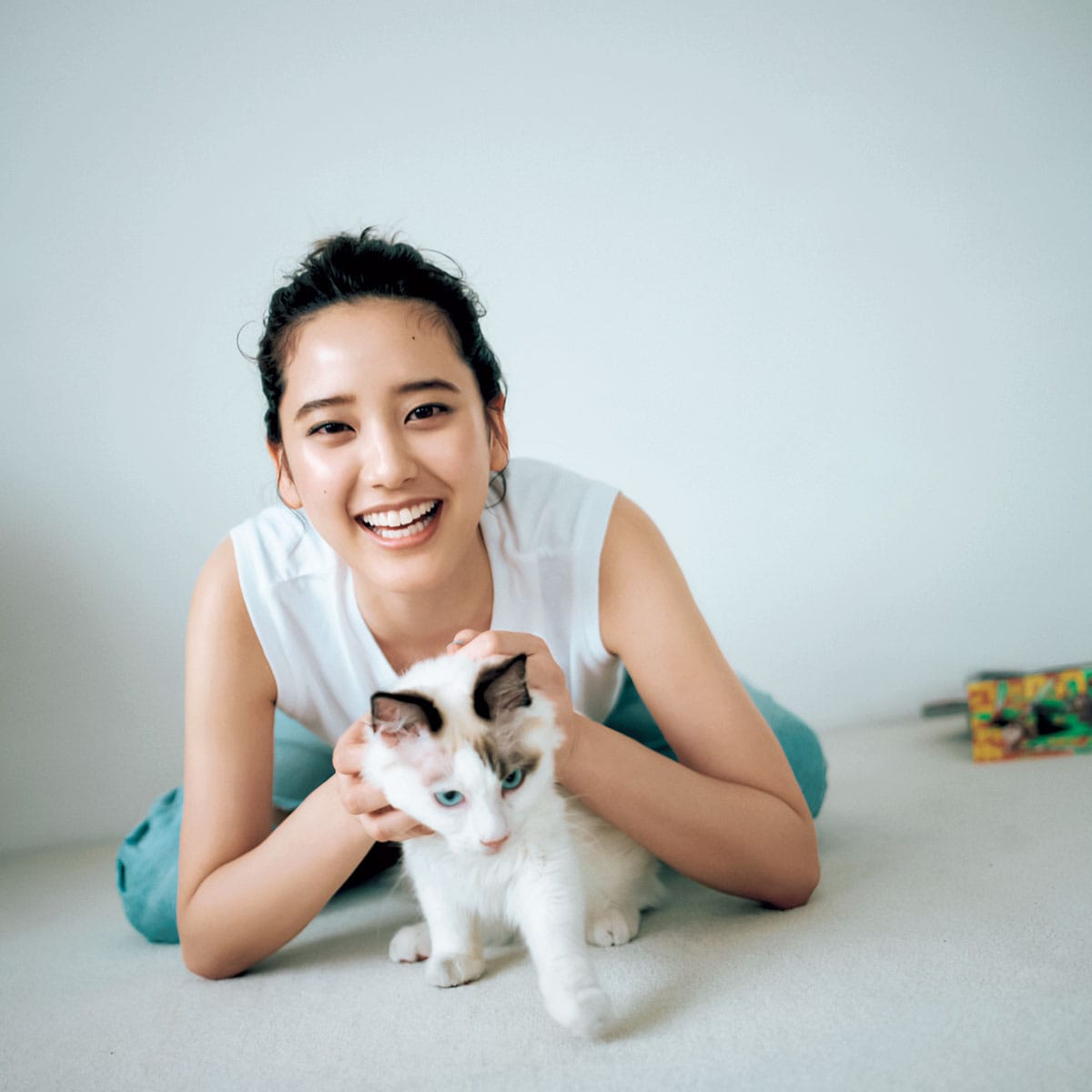 ロシアンブルーの男のコ・アル(5歳)とラグドールの男のコ・ベンジャミン(10カ月)と暮らしています。寝るときもずっと一緒で、アルは足元とか胸の上に乗ってきたり、ベンは顔周りとか背中にくっついてきたり。寄り添ってくれるのがめちゃくちゃ可愛くて、寝息が聞こえるくらい至近距離で寝ています。今回のベンとの初共演は、本当に心待ちにしていました。昨日のドラマの撮影現場でも「明日、うちの猫と撮影なんですよ」といろんなスタッフさんに自慢していたほど(笑)。撮影前、ベンはシャンプー、トリートメント、爪切り、耳掃除のフルコースで、万全にケア。撮影中もずっと可愛かったし、こんな機会めったにないので、今日の写真は絶対、家に飾ります。370枚くらいの全データもいただいて、本当に幸せです。おうち時間に漫画は欠かせなくて、少年漫画も少女漫画も好き。リラックスにもなるから、休みの日は漫画を大量に読んだりします。今、ハマっているキャラは、『チェンソーマン』のマキマさん。強くてミステリアスで、登場人物全員を魅了する私の理想的なキャラクターで、一時期携帯の待ち受けにしていました。映像作品と違って、登場人物の声や話し方を勝手に想像できる余白があるところも漫画の魅力。そのぶん感情移入して、めっちゃくちゃ泣きます。人生で一番泣いた漫画は『女王の花』。次の日まで引きずるくらい泣きました。私の中で殿堂入りは『シックス ハーフ』。漫画愛が止まりませんが(笑)、私にとって漫画は、非日常の世界に連れて行ってくれるだけでなく、「こういう役やってみたいな」という原動力にもなってくれる存在です。