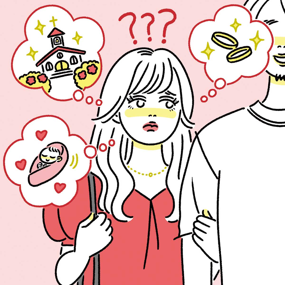 例えば、共通の友達の結婚や同世代芸能人の出産の話題など、ふたりでいる場でそういうニュースが出たタイミングで、『そういえば、○○はどう思ってる?』と雑談レベルで聞いてみる。問い詰めるように向き合うのではなく、情報収集感覚で会話して、相手が身構えずに答えられる状況を作りましょう。