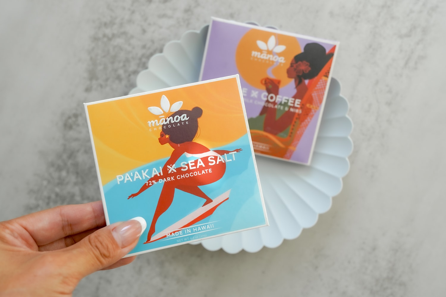 マノアはハワイ産の原料使ってハワイでチョコレートを作る、サスティナブルなチョコレートカンパニー。大量生産ができないため購入できる場所が限られていますが、Whole FoodsやFoodlandなどのオーガニック系スーパーで購入可能です。