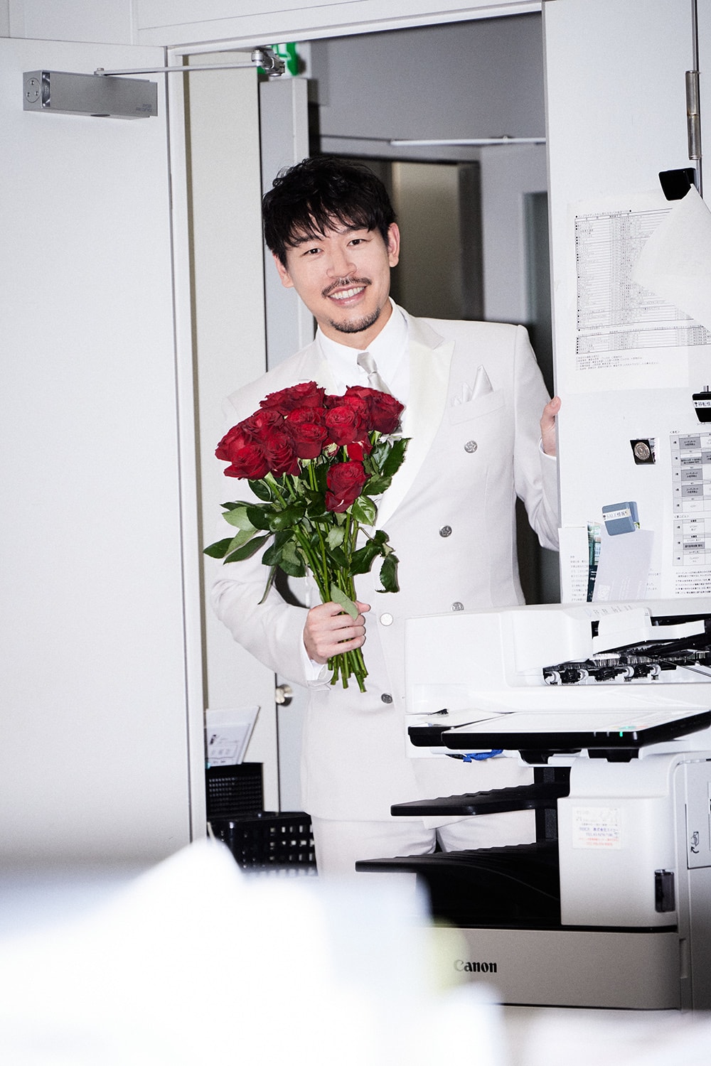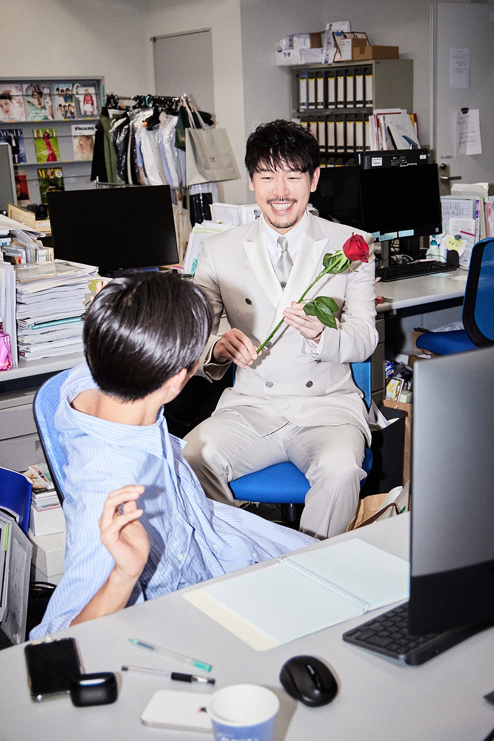 編集部スタッフには挨拶と同時にサプライズローズを贈呈…!?