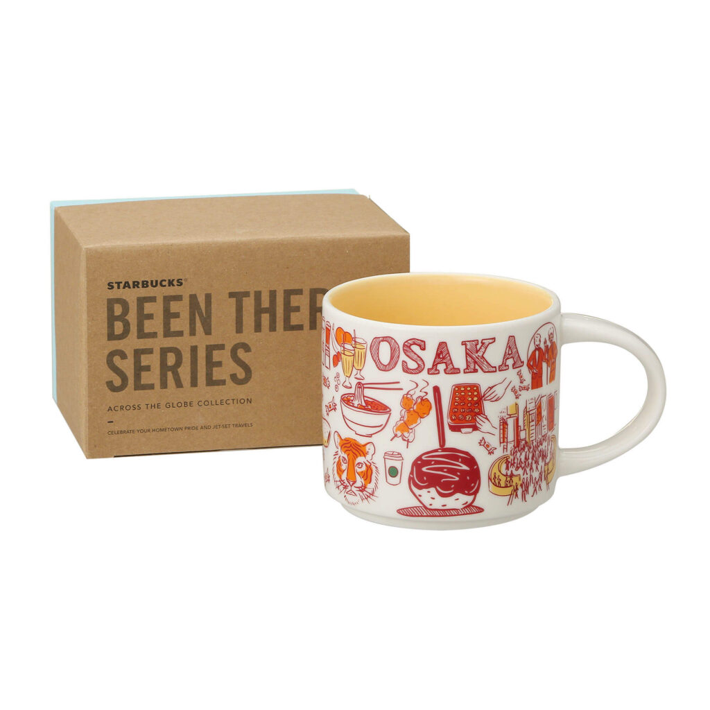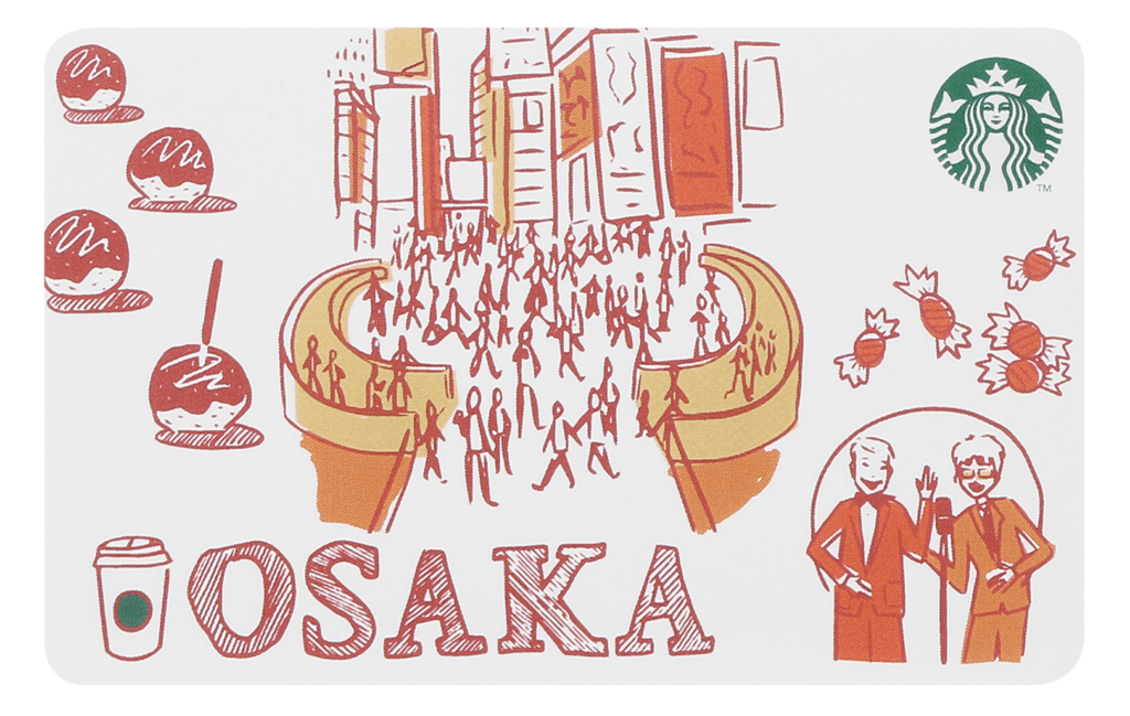 世界各地のスターバックスで展開されている「Been There Series」のOSAKAデザインです。陽気でにぎやか、グルメでも有名な大阪ならではの街の様子をイメージしてデザインされています。たこ焼き、お好み焼き、ミックスジュース、お笑い芸人、たくさんの人が集まる戎橋など、大阪らしいモチーフをたくさん散りばめています。キーカラーは元気が出そうな明るいオレンジとベージュです。