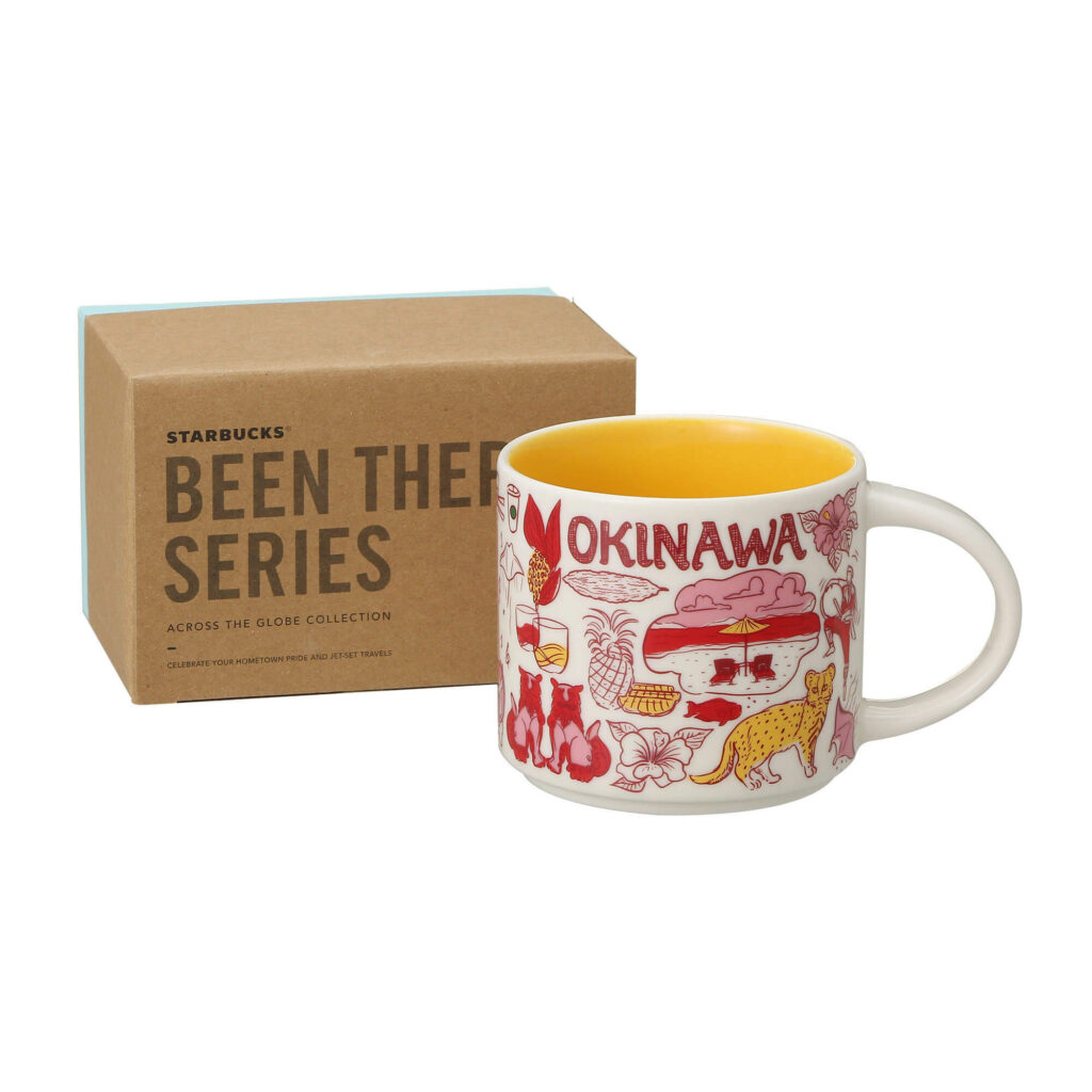 世界各地のスターバックスで展開されている「Been There Series」のOKINAWAデザインです。燦燦と降りそそぐ太陽の光と沖縄の街が放つ南国らしさをイメージしてデザインされています。ビーチ、ハイビスカス、マンタ、シーサー、琉球ガラス、三線など、沖縄らしいモチーフをたくさん散りばめています。キーカラーは活気ある人々をイメージした赤とイエローです。