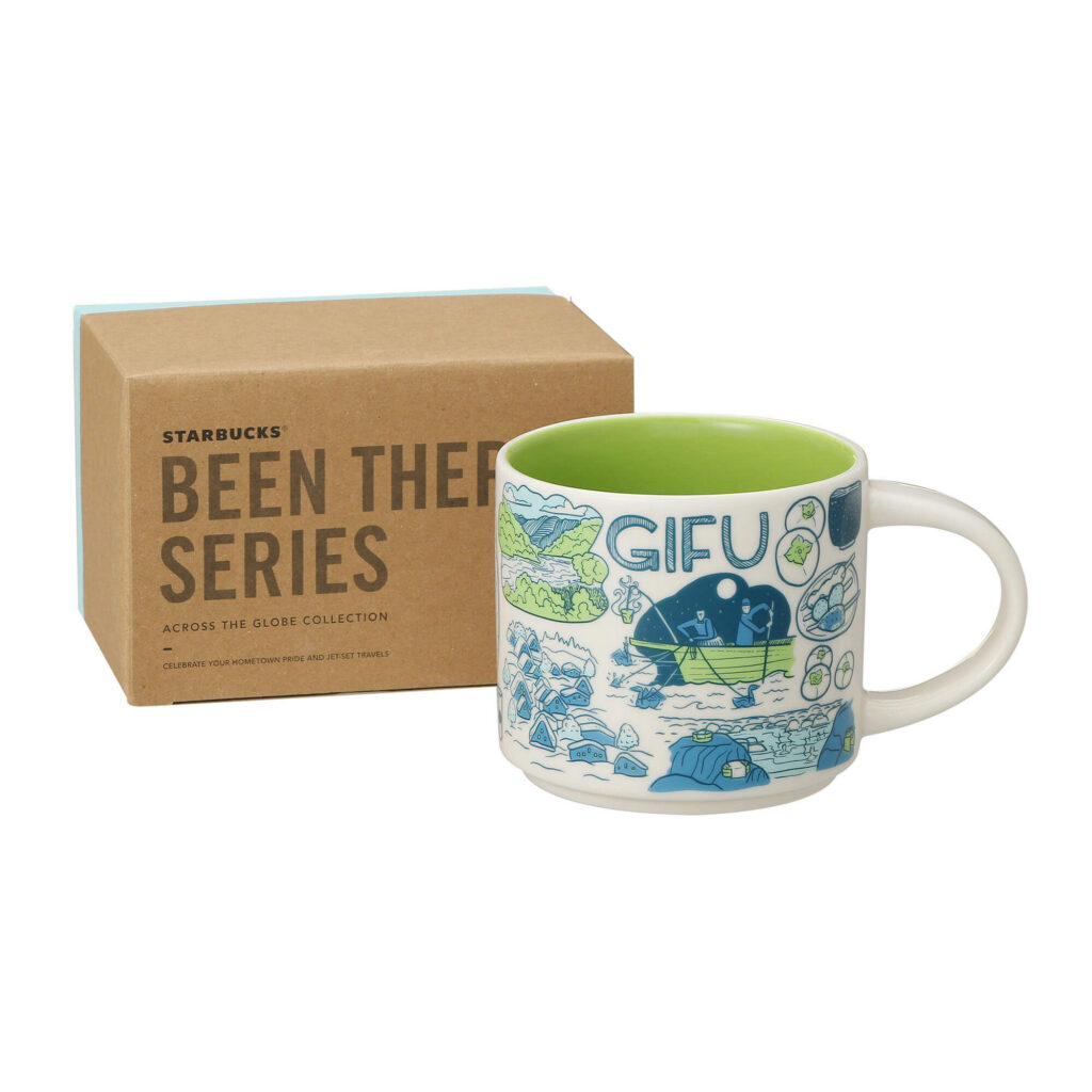 世界各地のスターバックスで展開されている「Been There Series」のGIFUデザインです。山と川、たくさんの自然が残る情景をイメージしてデザインされています。伝統の鵜飼い、情緒あふれる下呂温泉、雪がしんしんと降る白川郷、五平餅、朴葉味噌など、岐阜らしいモチーフをたくさん散りばめています。キーカラーは自然豊かなのんびりとした風景をイメージした明るい青と緑です。