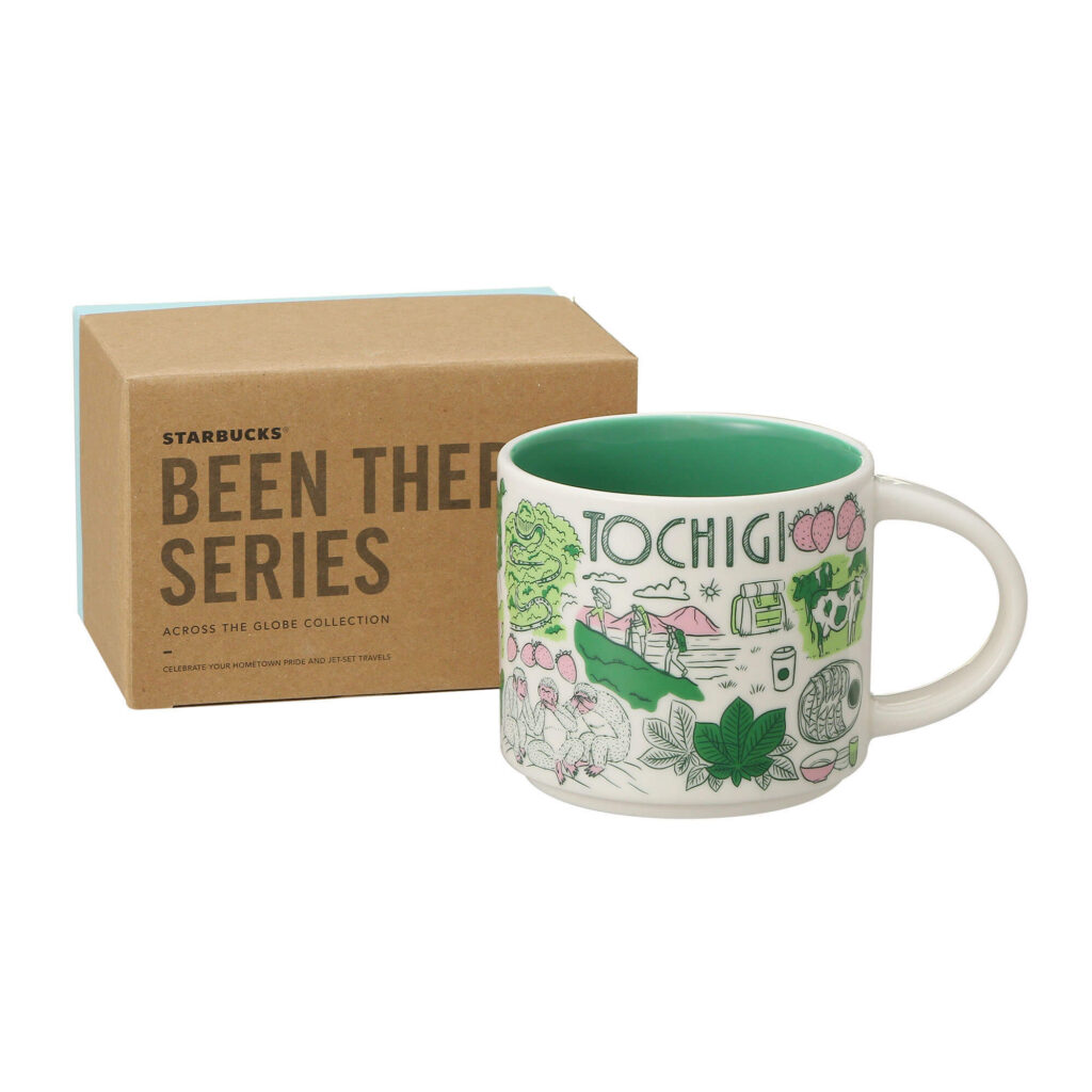 世界各地のスターバックスで展開されている「Been There Series」のTOCHIGIデザインです。豊かな自然の中に流れるのんびりとした穏やかさをイメージしてデザインされています。高原や牧場の風景、日光いろは坂、華厳の滝、名産のいちご、県木とちの葉など、栃木らしいモチーフをたくさん散りばめています。キーカラーは自然に囲まれたイメージの緑とあたたかみのあるピンクです。