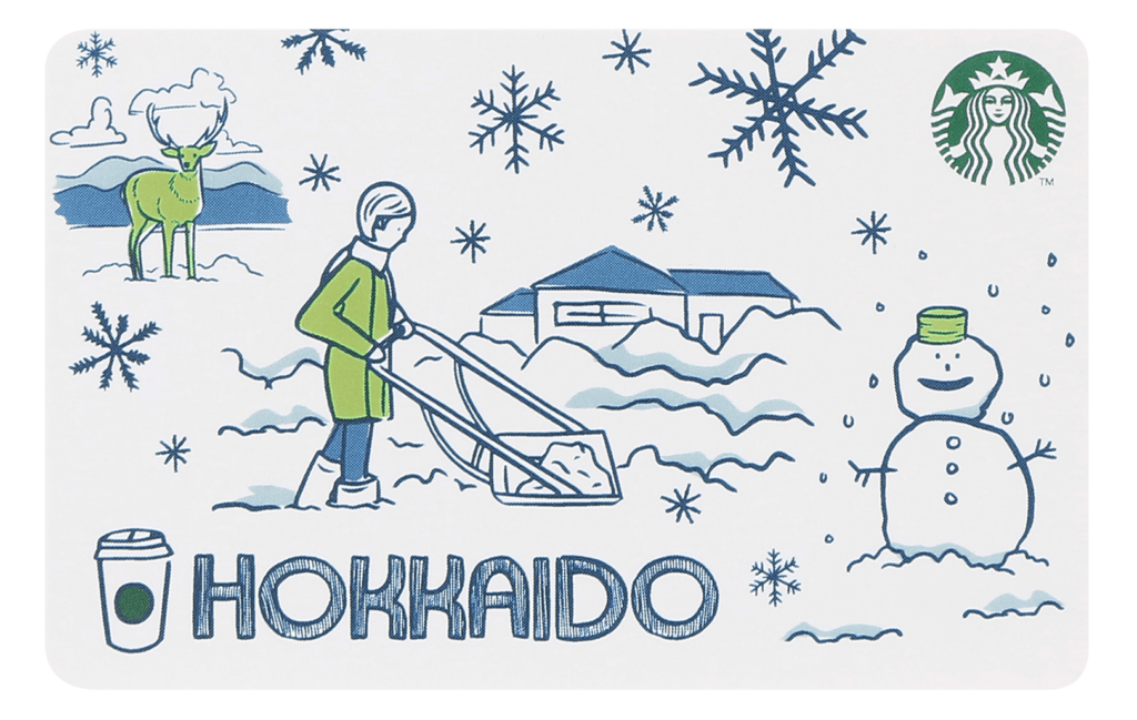 世界各地のスターバックスで展開されている「Been There Series」のHOKKAIDOデザインです。北海道の代名詞である冬の情景をイメージしてデザインされています。防寒具に包まれた子供たち、かわいらしい野鳥シマエナガ、木彫りの熊、毛ガニ、海鮮丼など北海道らしいモチーフをたくさん散りばめています。キーカラーはしんしんと降る雪をイメージした青と、自然の豊かさをイメージした黄緑です。